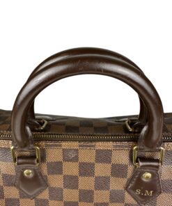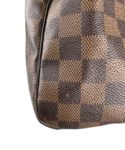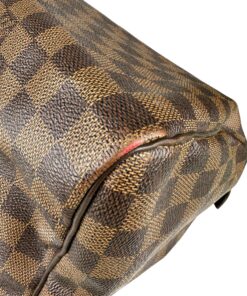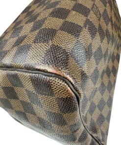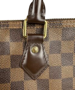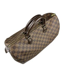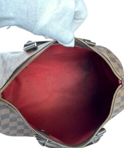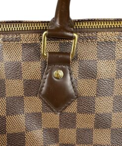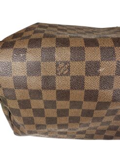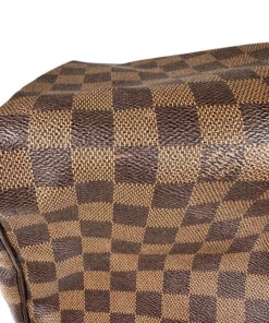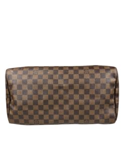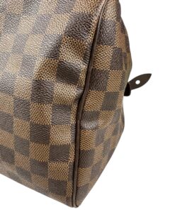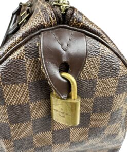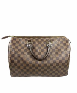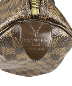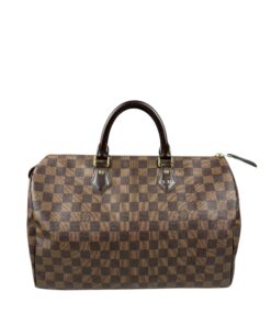 Elegante e desideratissima Borsa Louis Vuitton Speedy 35 in Tela Damier Ébène e dettagli in pelle marrone scuro, da indossare su ogni outfit, dal più casual al più ricercato.