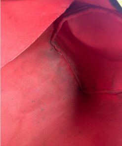 Sugli angoli, la tela presenta una leggera usura che lascia intravedere il rosso del rivestimento interno.