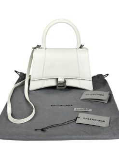 Stupenda Borsa Balenciaga Hourglass Piccola in Pelle Bianca.