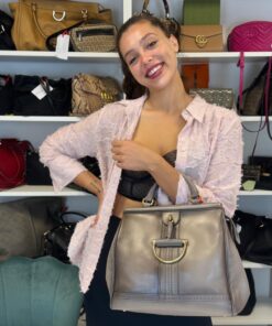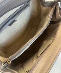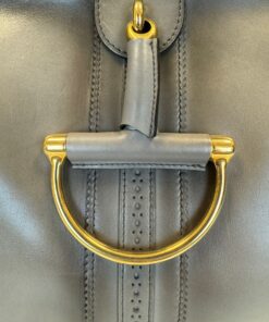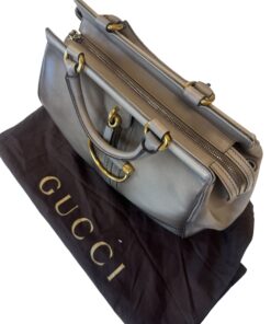 Borsa a Mano Gucci Duilio Horsebit Taupe, da portare tramite i doppi manici in pelle.