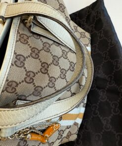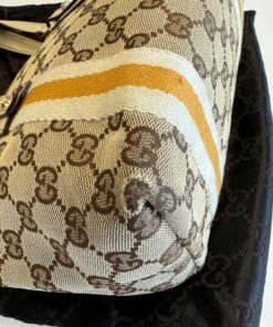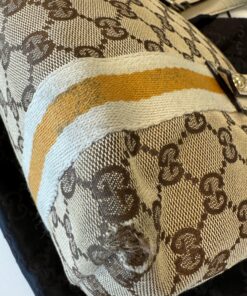 Realizzata nel tipico tessuto GG Supreme beige ed ebano e decorata con l’inconfondibile motivo Nastro Web, bianco e giallo.