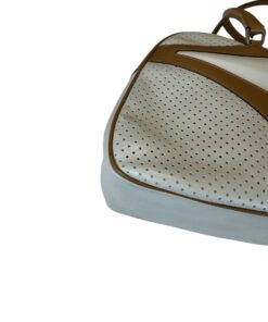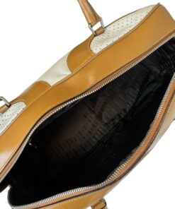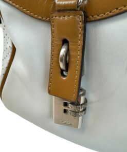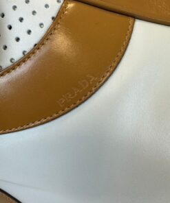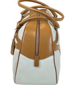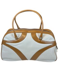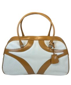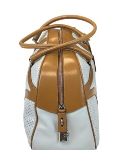 Borsa a Mano Prada Bowler Vitello Drive Bianca e Marrone Chiaro.