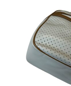 - Realizzata interamente in pelle bianca, con dettagli traforati