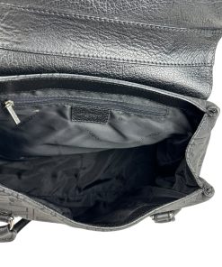 - Apertura superiore con patta in pelle e bottone magnetico
