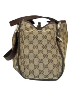 Realizzata nel rinomato tessuto GG Supreme beige ed ebano, è valorizzata da dettagli in pelle marrone scuro ed in metallo dalla finitura dorata.