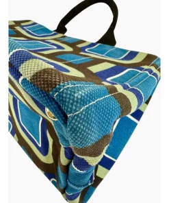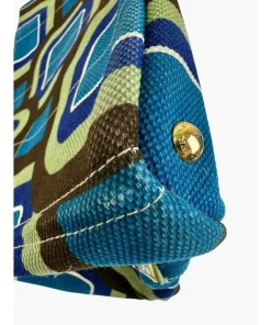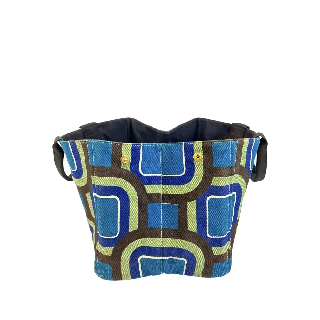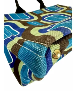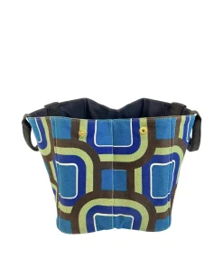 - Realizzata in tessuto resistente, con stampa optical marrone blu e verde