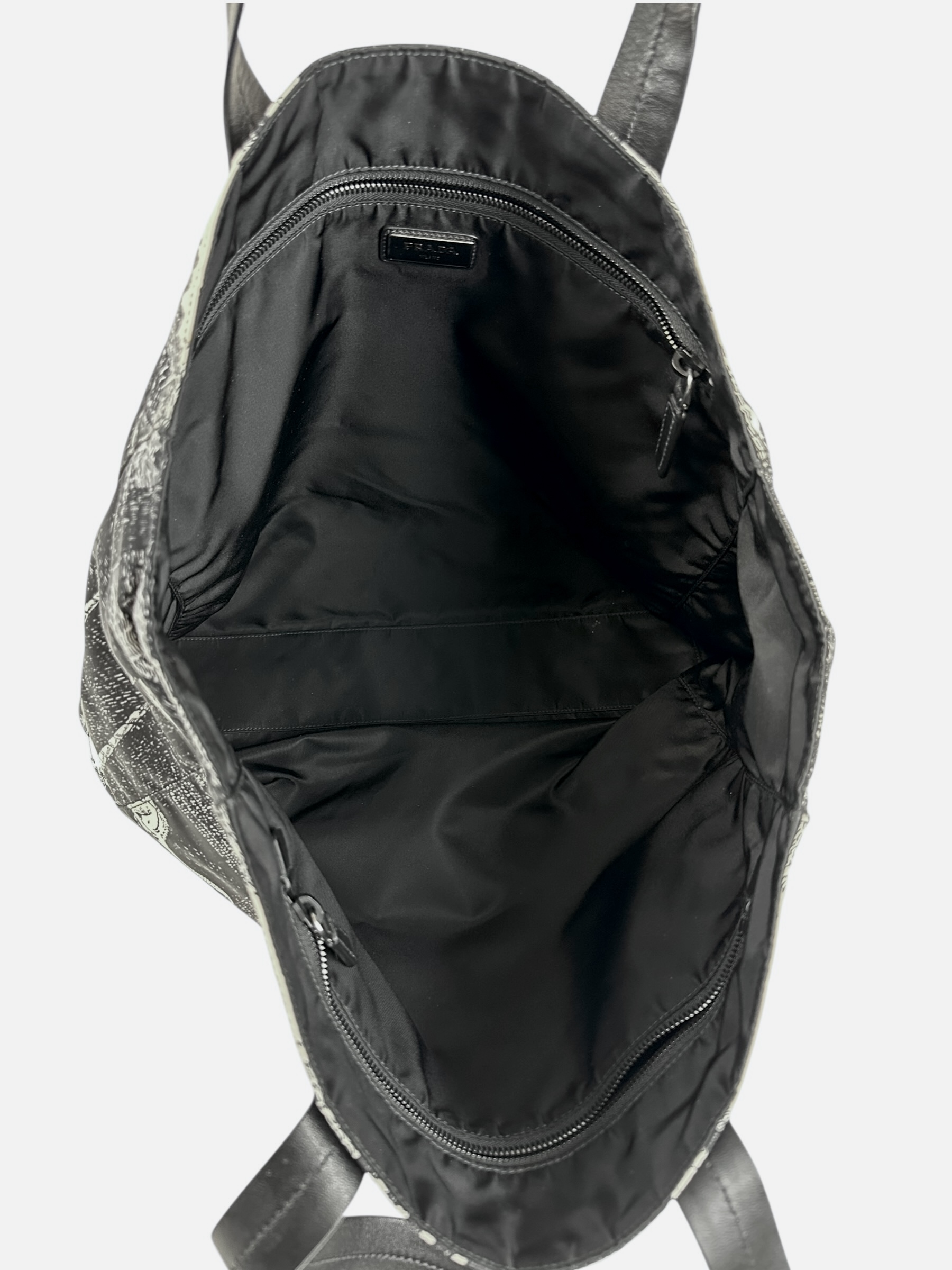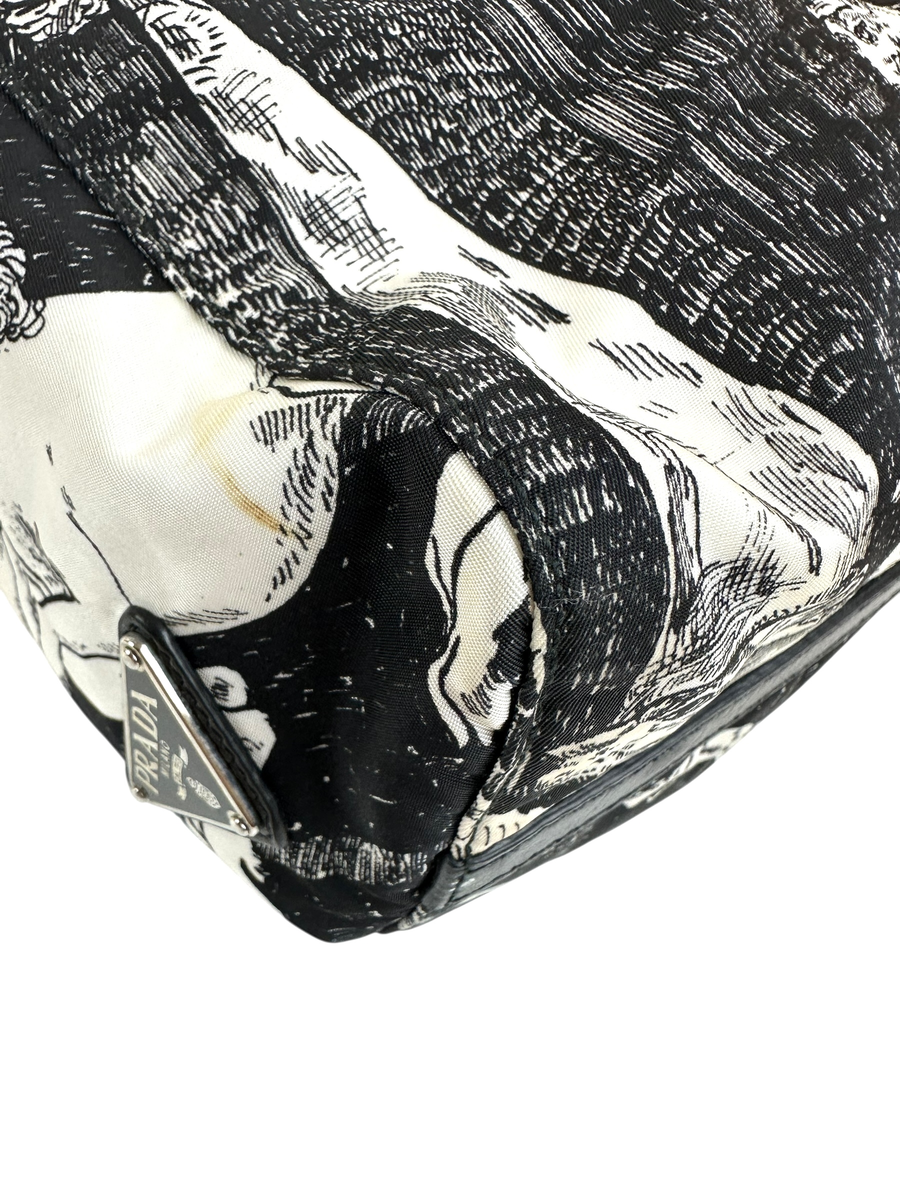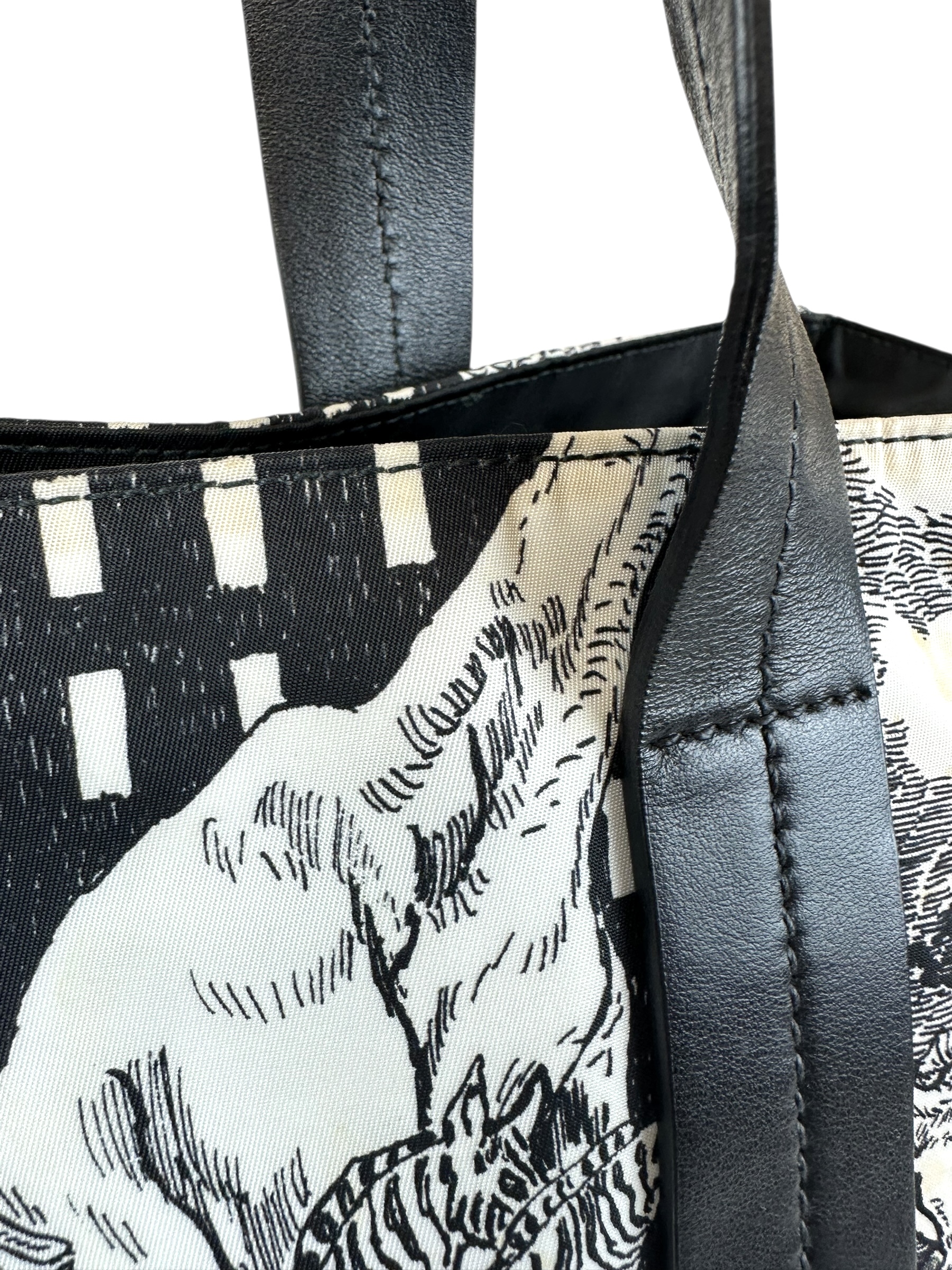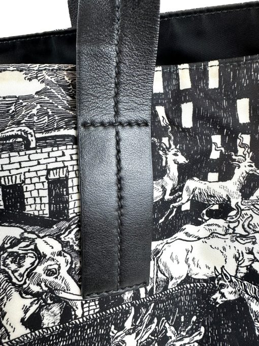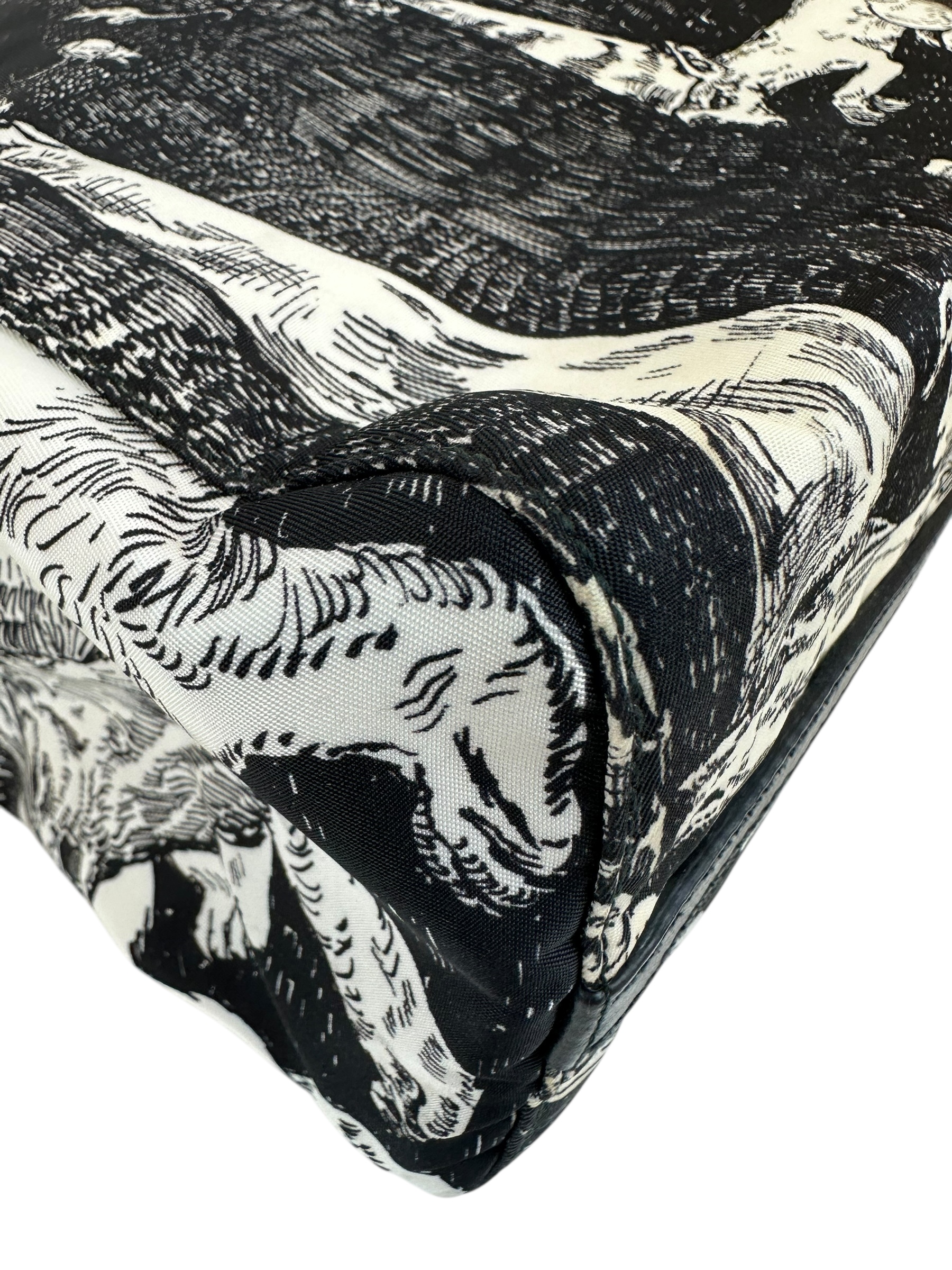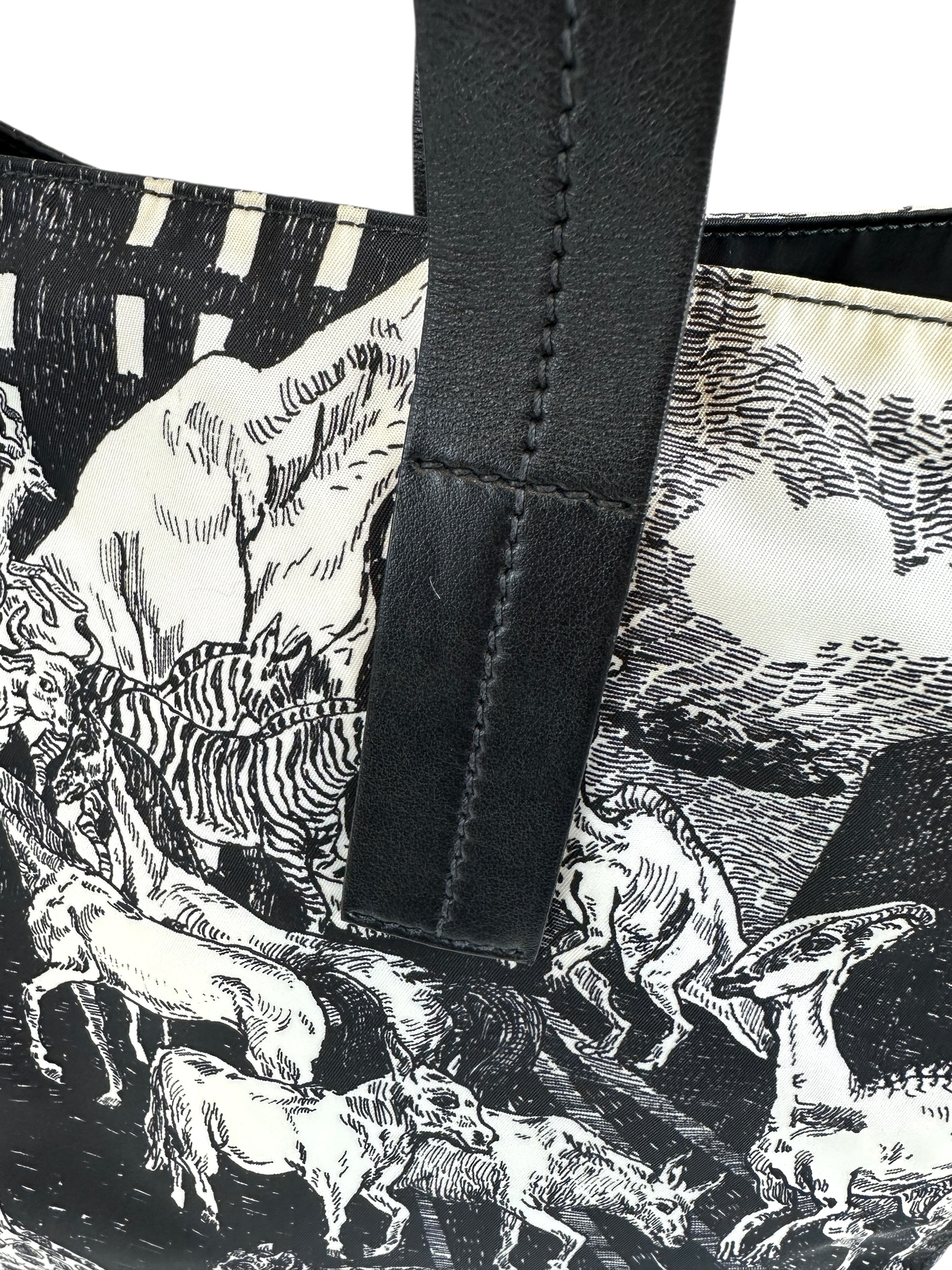 Borsa a Spalla Prada Tote Bag Christophe Chemin Stampa Animali Bianca e Nera.