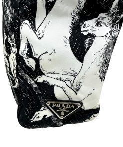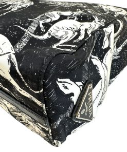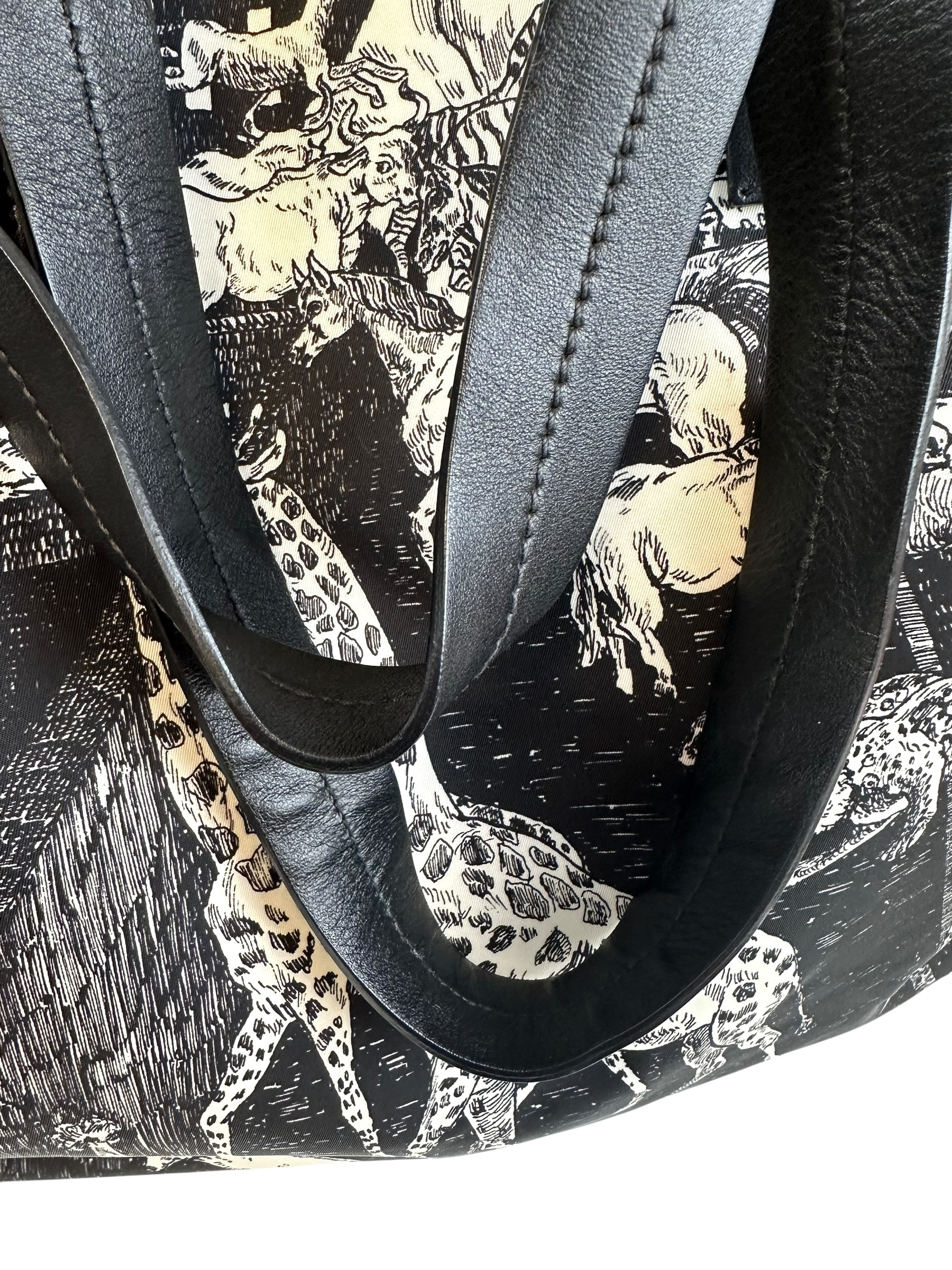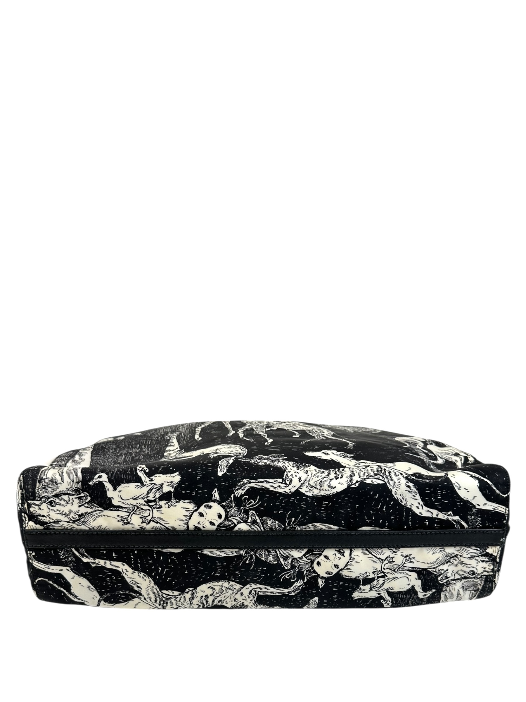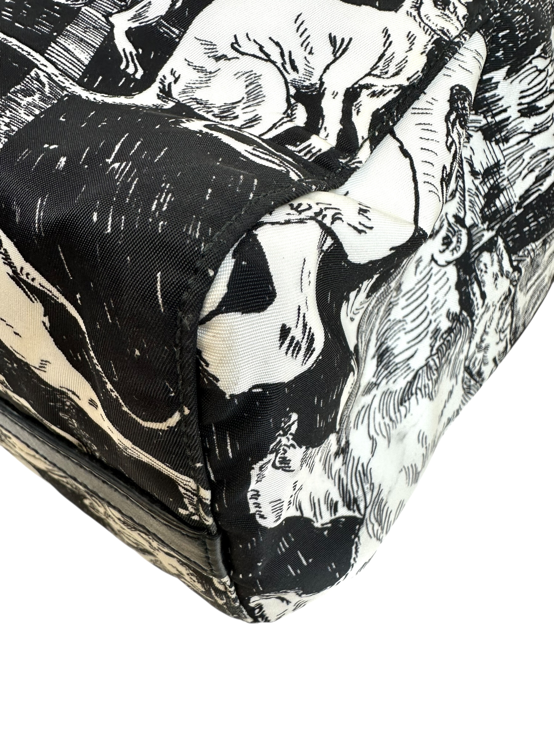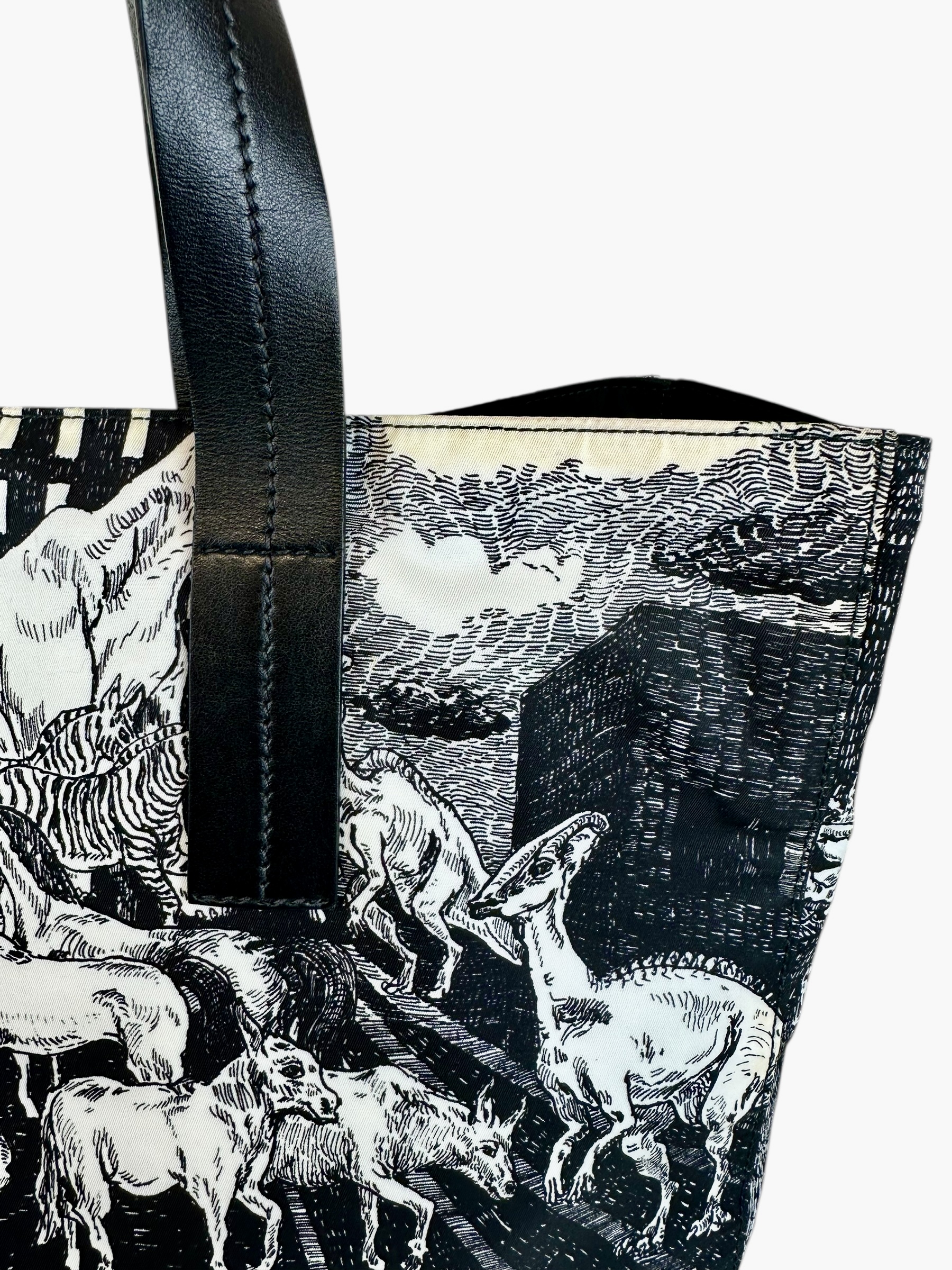 Borsa a Spalla Prada Tote Bag Christophe Chemin Stampa Animali Bianca e Nera.