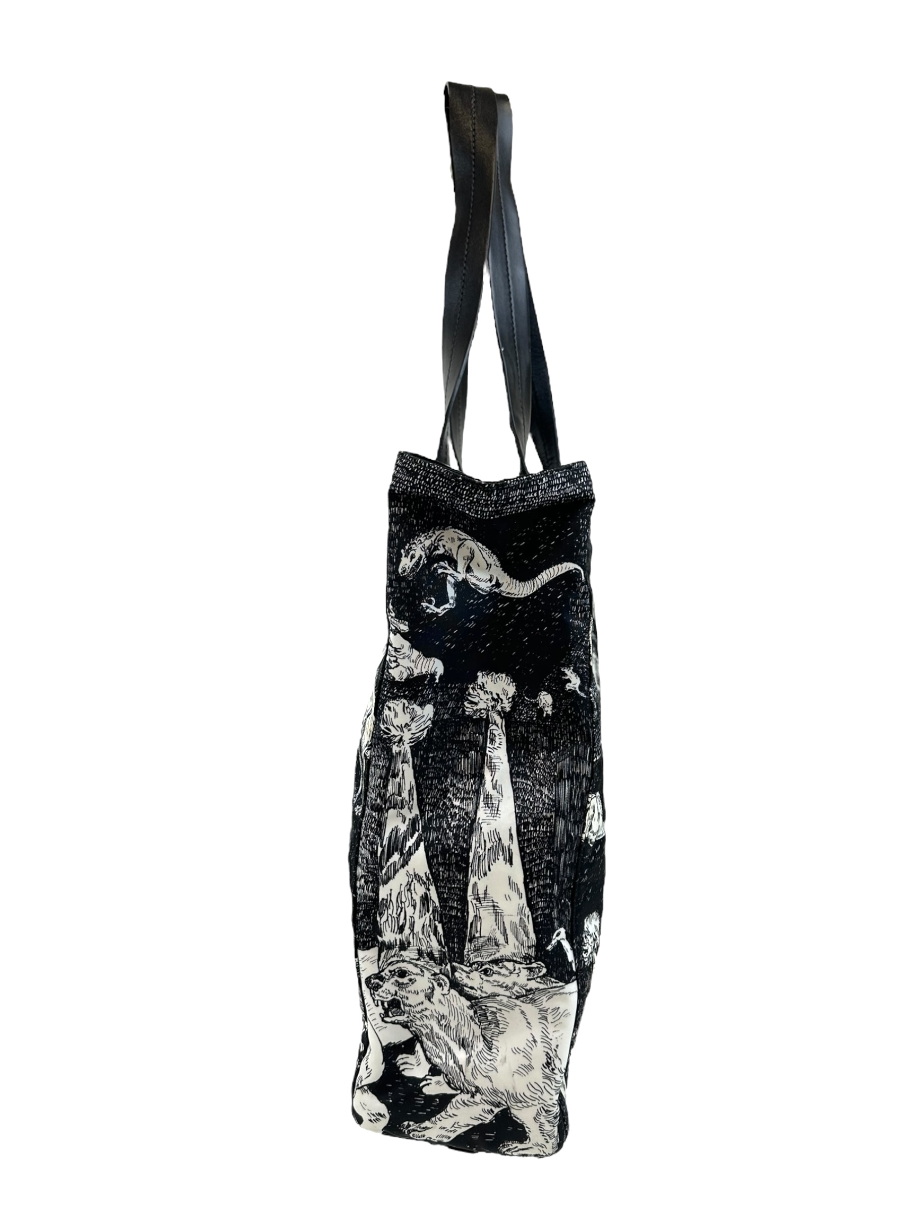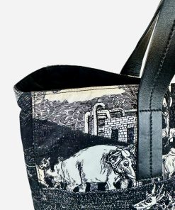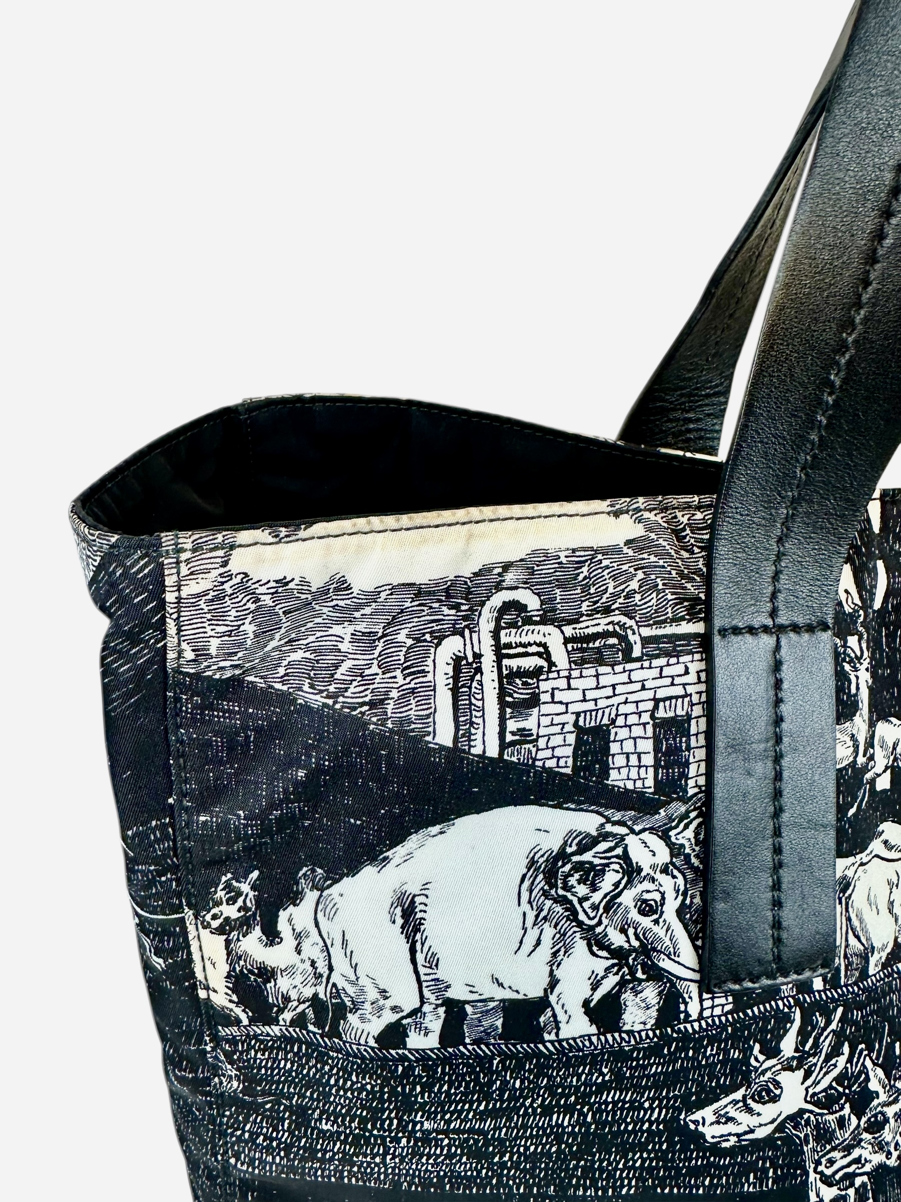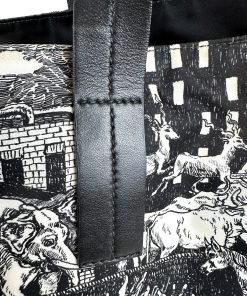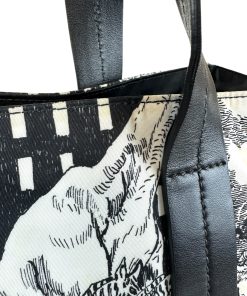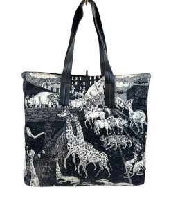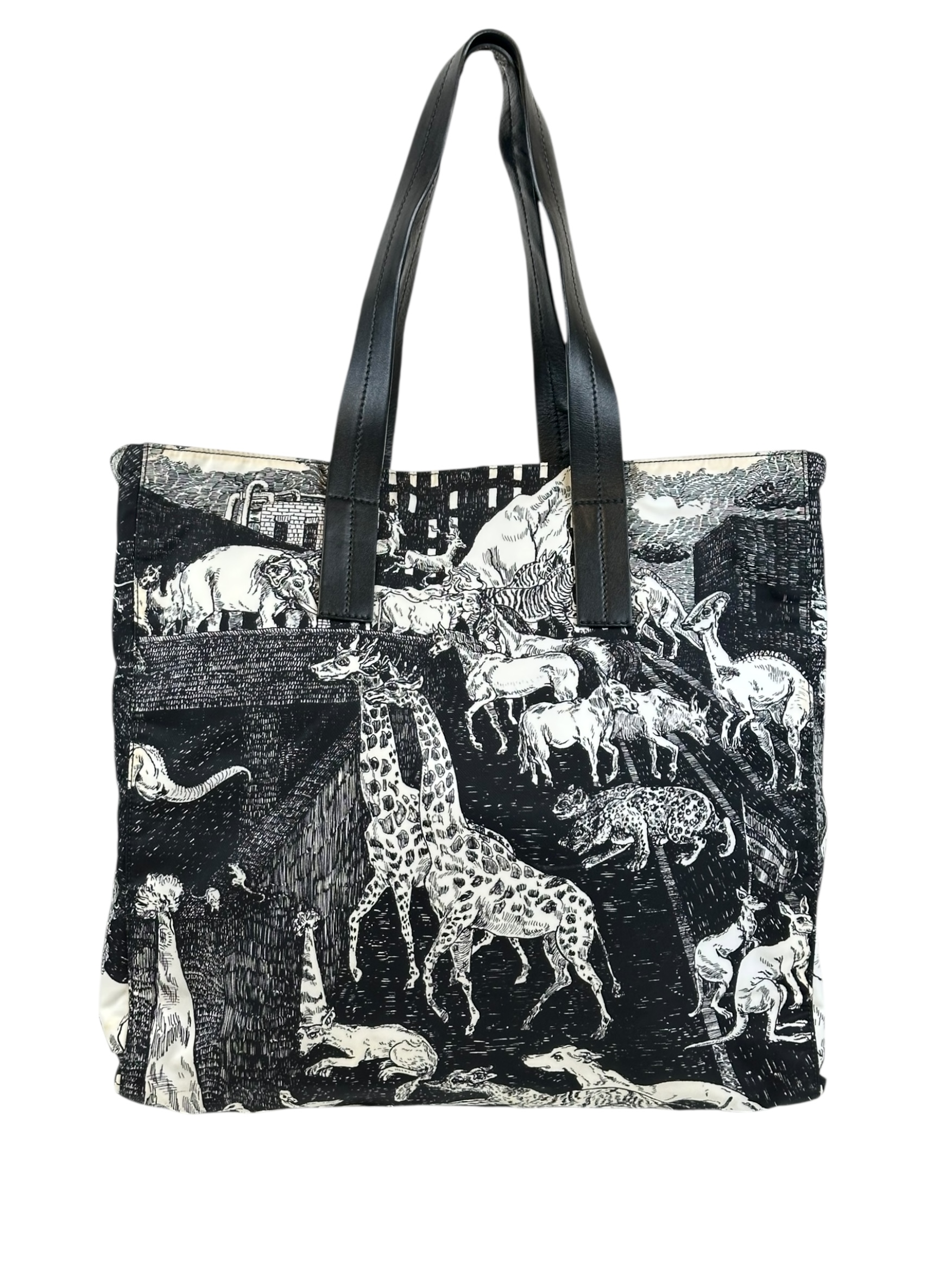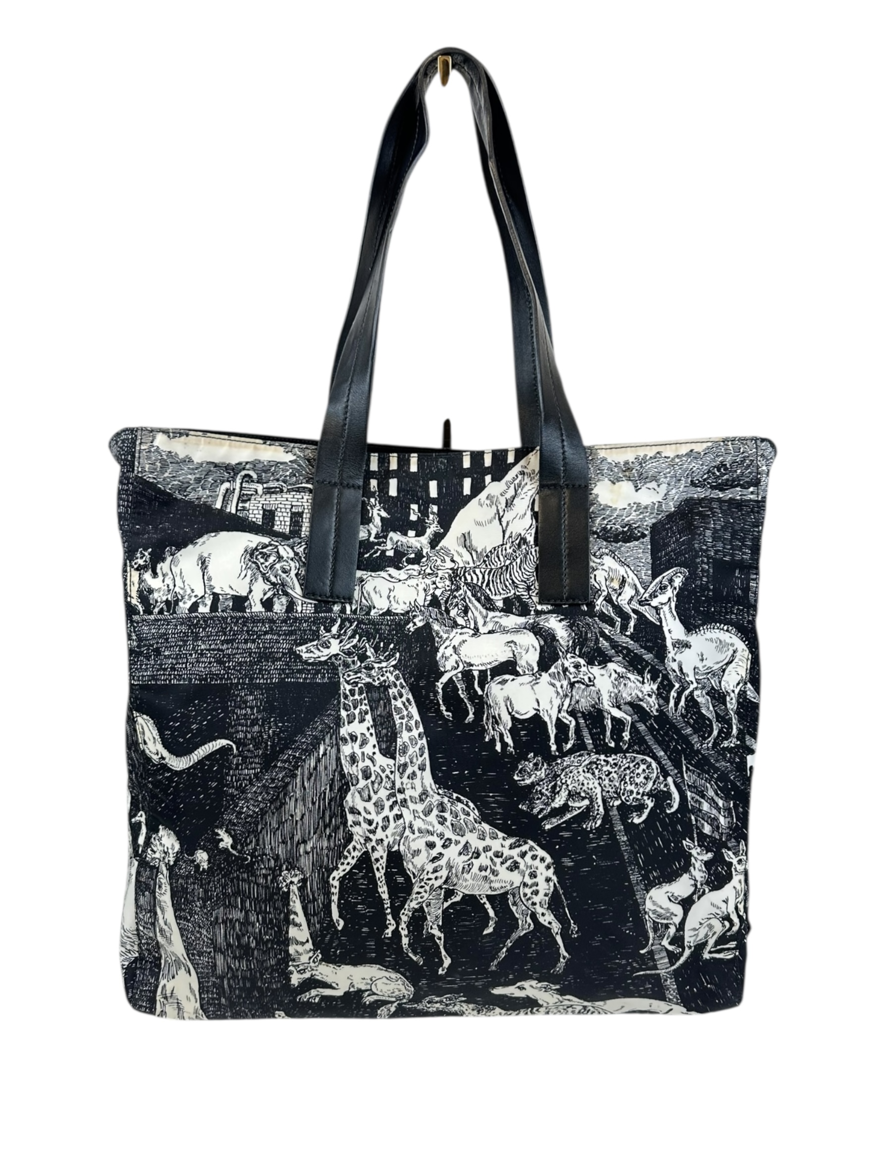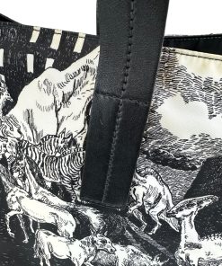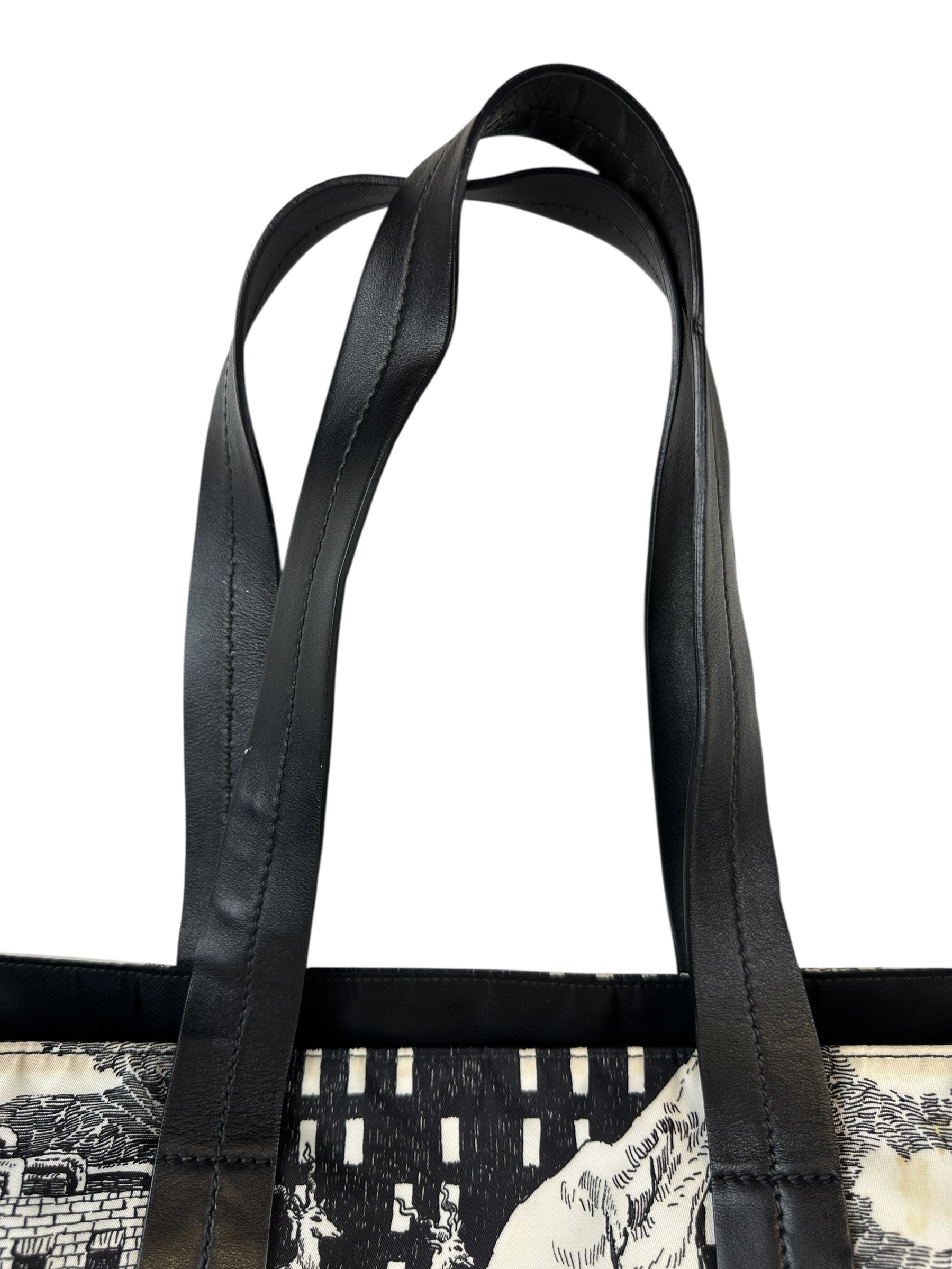 Borsa a Spalla Prada Tote Bag Christophe Chemin Stampa Animali Bianca e Nera.