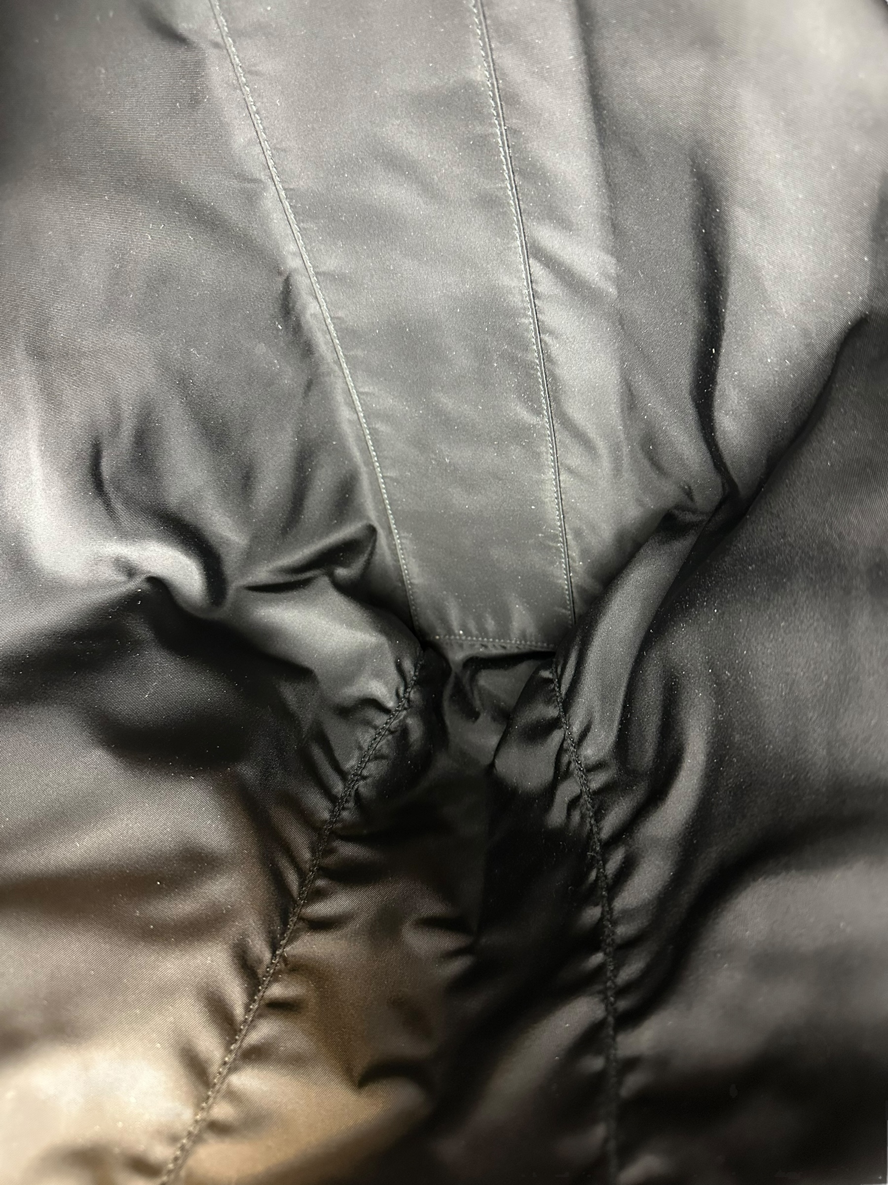 Minimi segni sui manici, che sono realizzati in morbida e confortevole pelle.