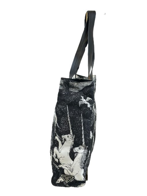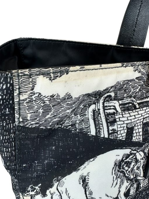 Borsa a Spalla Prada Tote Bag Christophe Chemin Stampa Animali Bianca e Nera