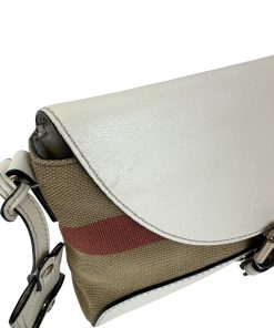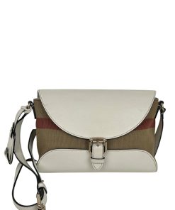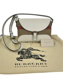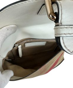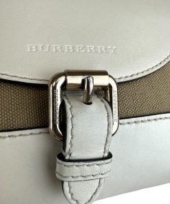 Borsa a Tracolla Burberry in Yuta e Pelle Bianca