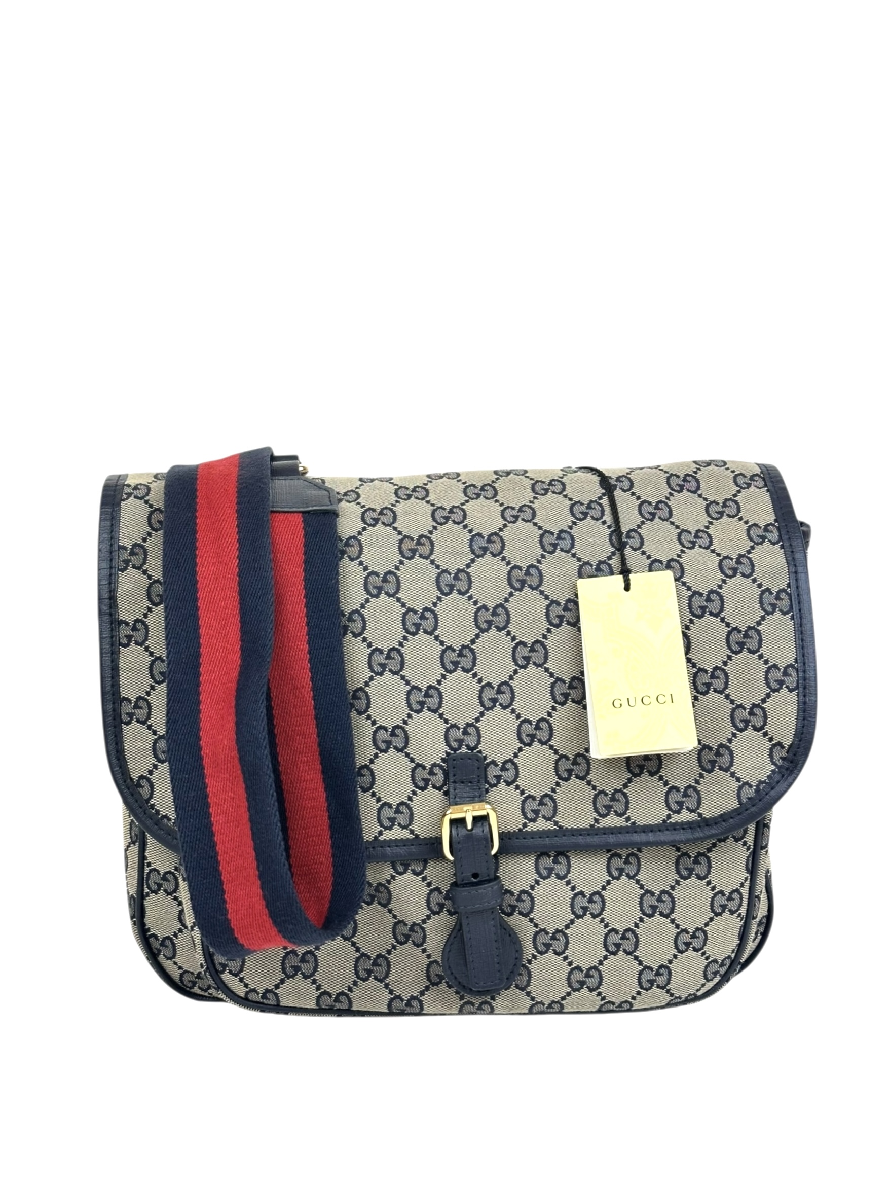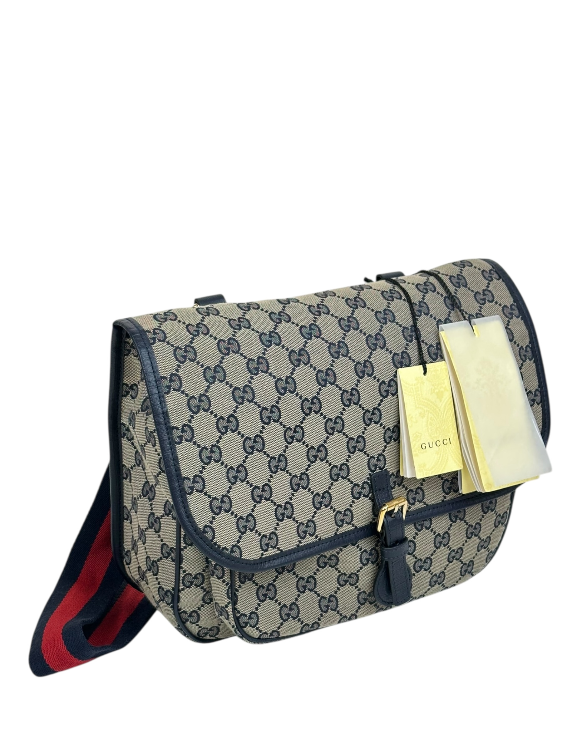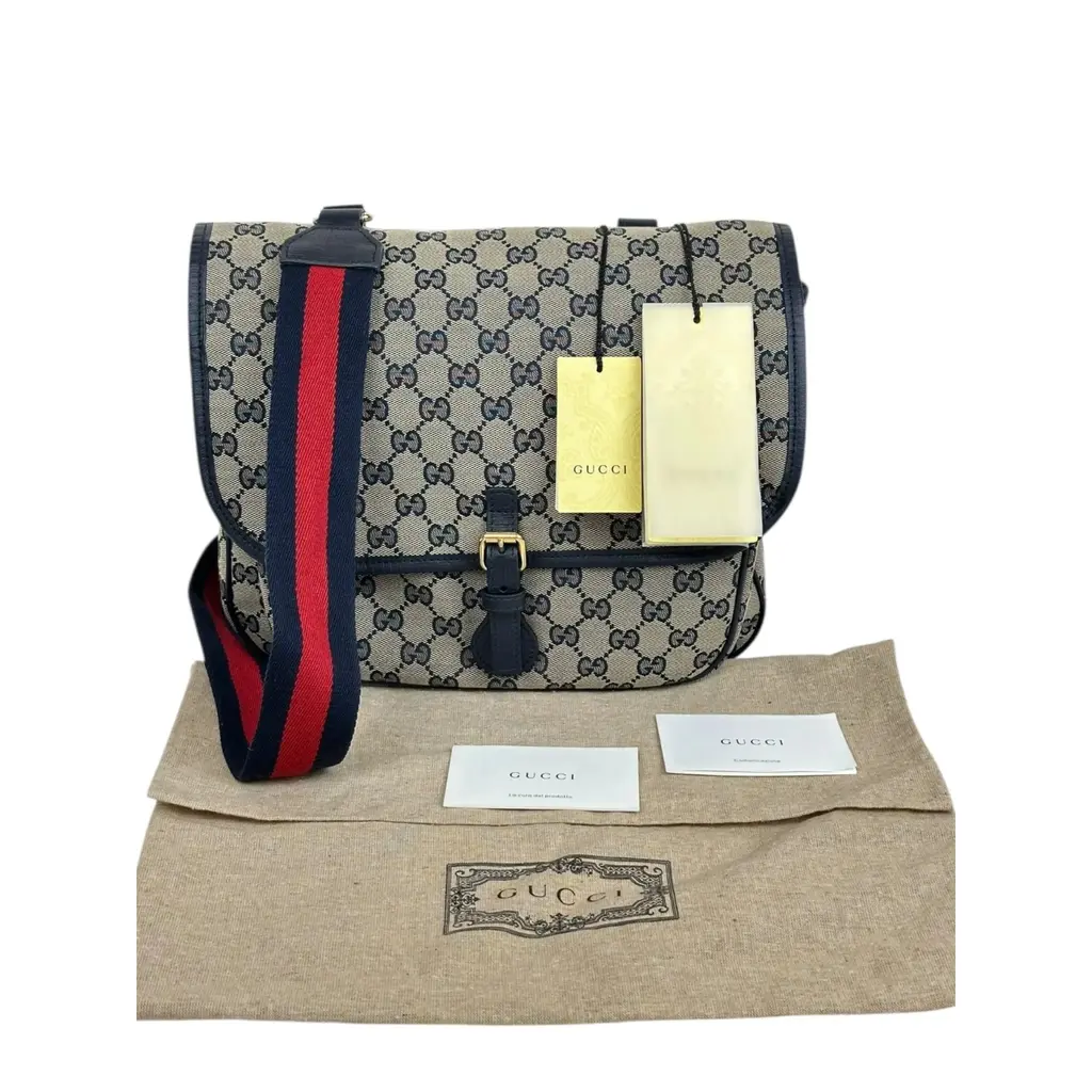 Borsa a Tracolla Gucci in Tela GG Supreme Blu e Beige.