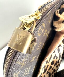 Borsa a mano, in tela Monogram, con dettagli e manico in pelo leopardato.