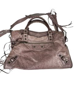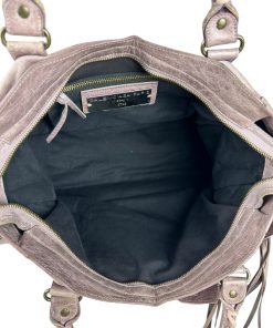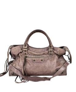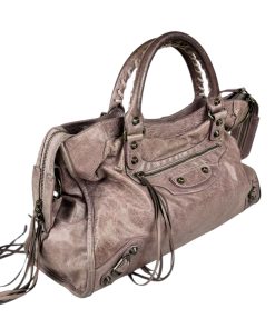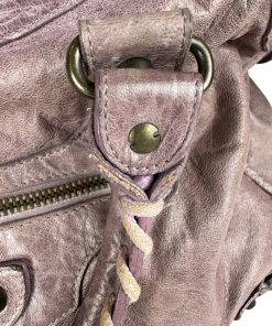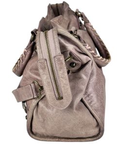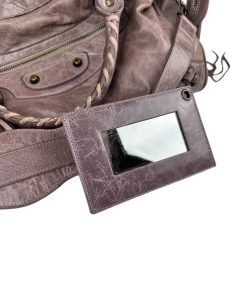 Bellissima Borsa Balenciaga Le City Media in Pelle Lilla, realizzata in morbidissima pelle lavorata con un effetto invecchiato.