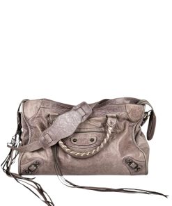 Bellissima Borsa Balenciaga Le City Media in Pelle Lilla, realizzata in morbidissima pelle lavorata con un effetto invecchiato.