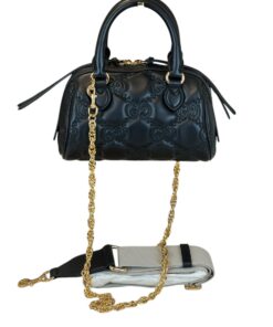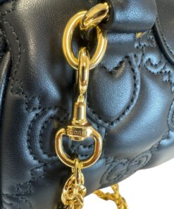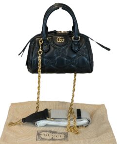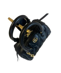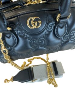 Meravigliosa Borsa Bauletto Gucci Small in Pelle Matelassé Nera, con doppia tracolla.