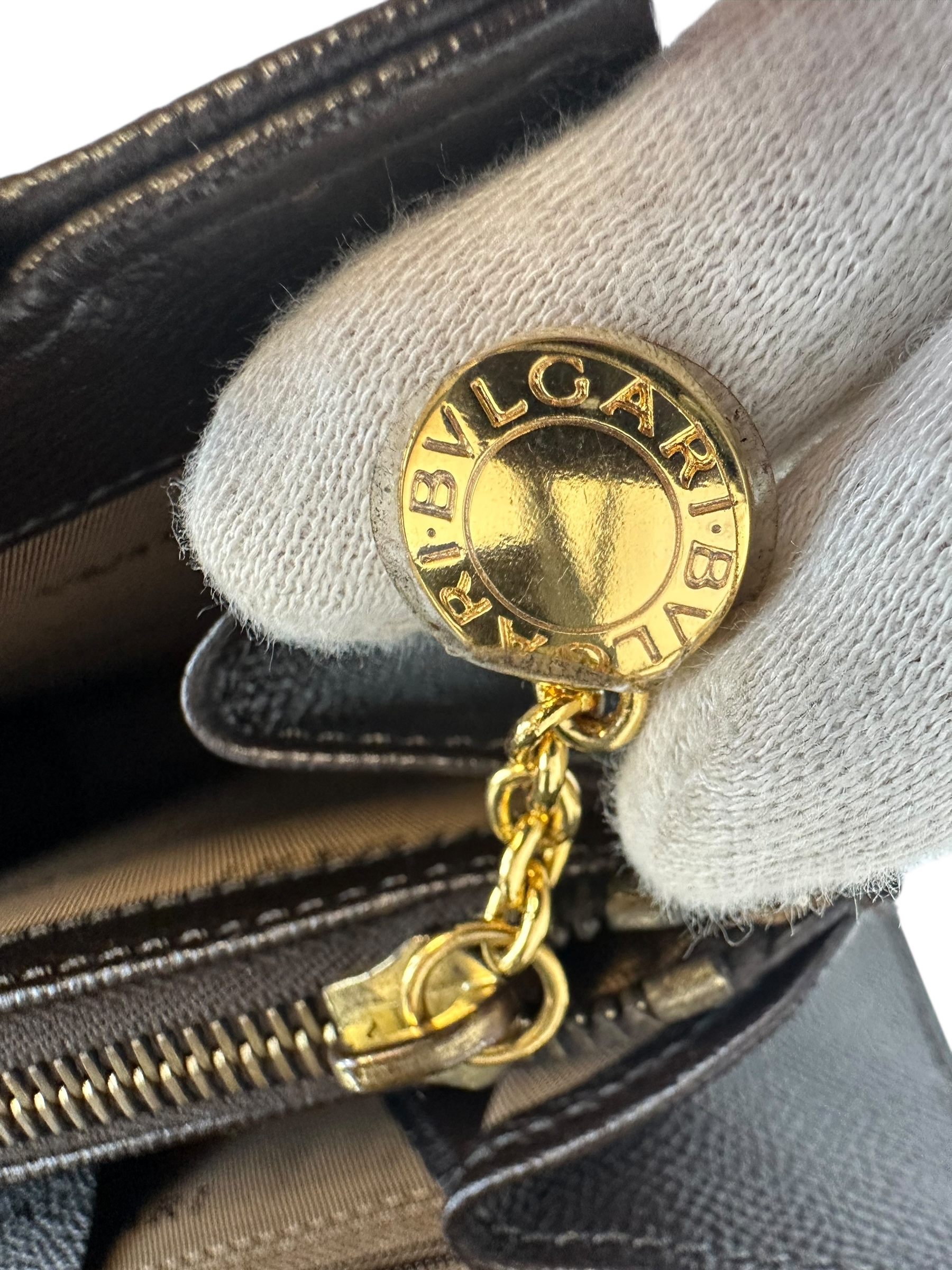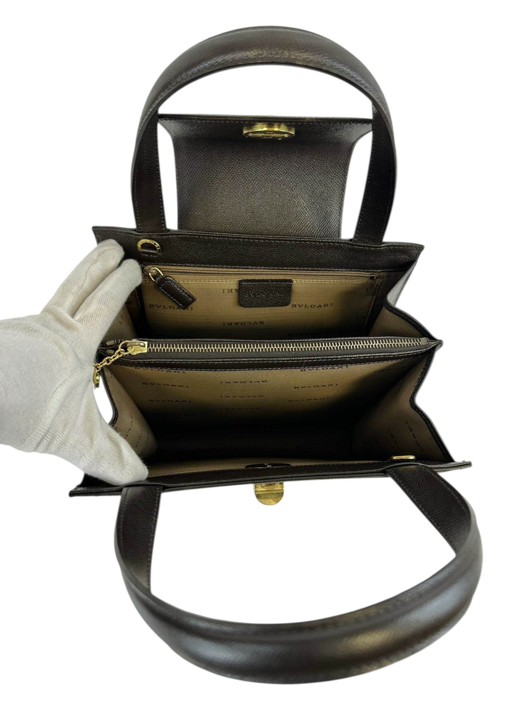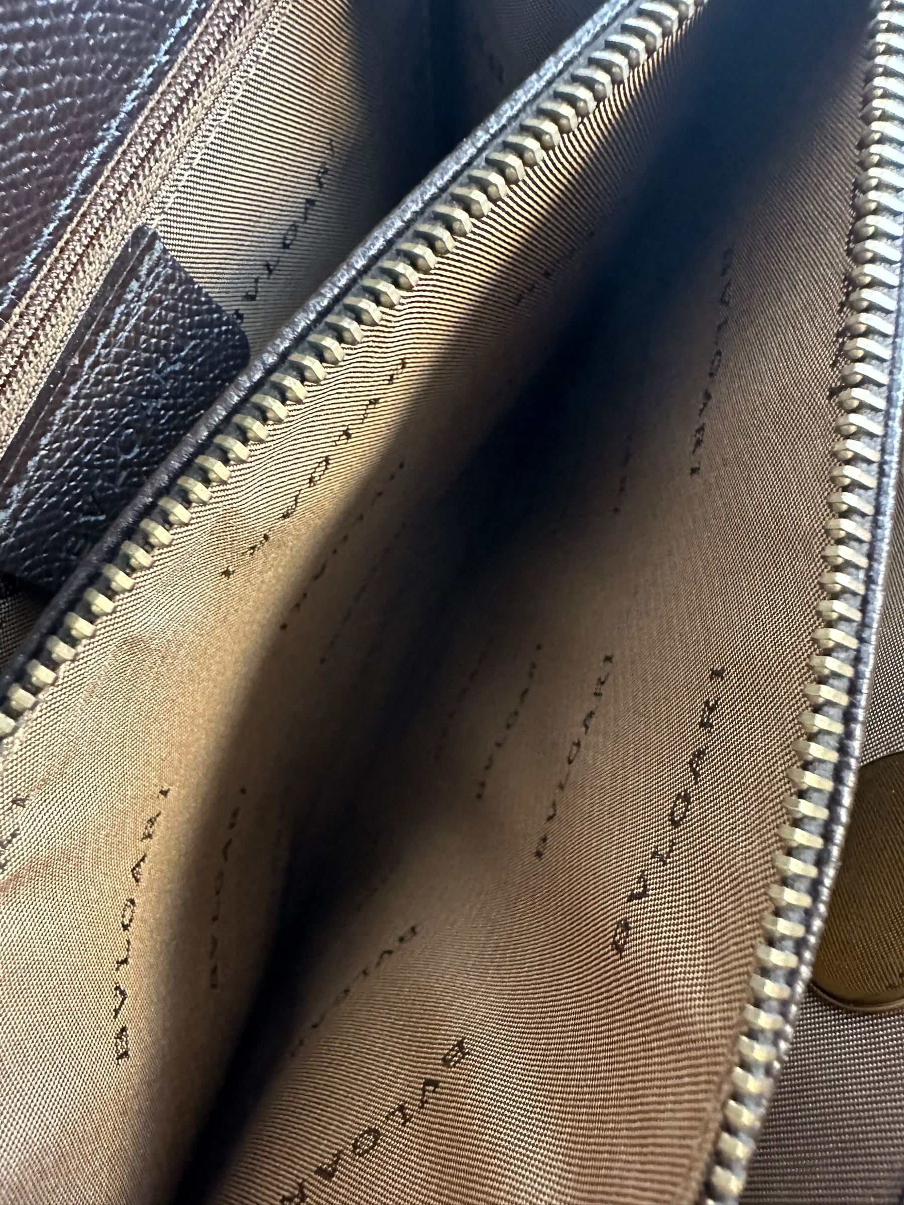 Borsa Bulgari a Mano in Pelle Martellata Marrone.