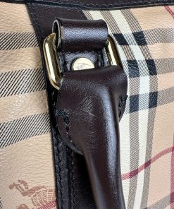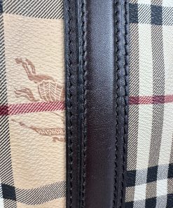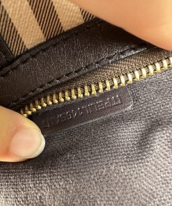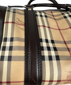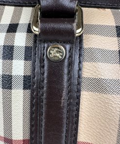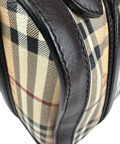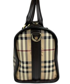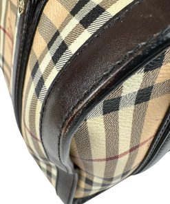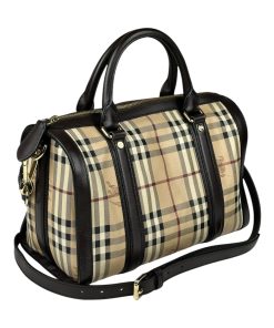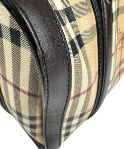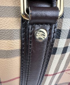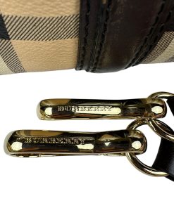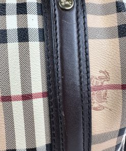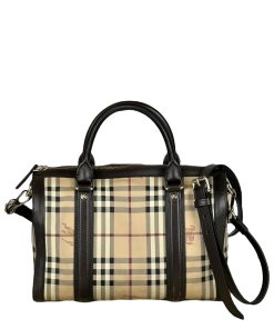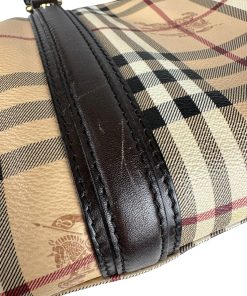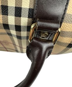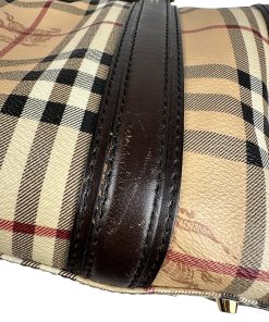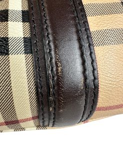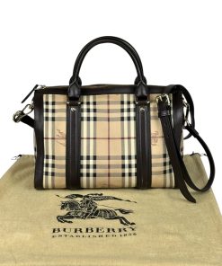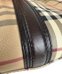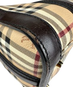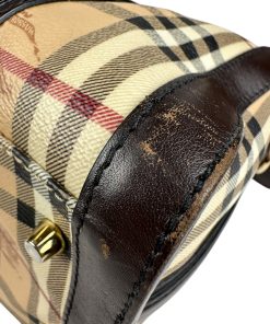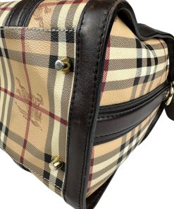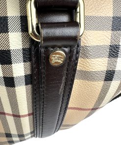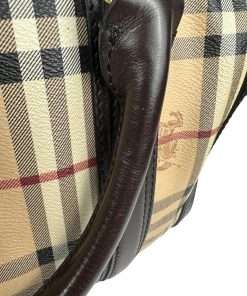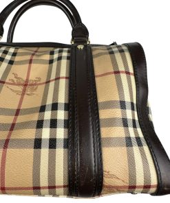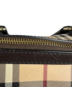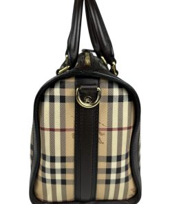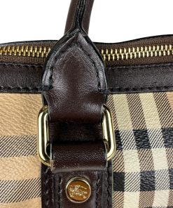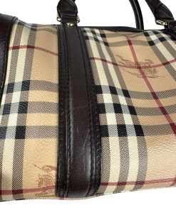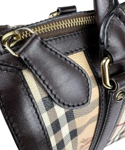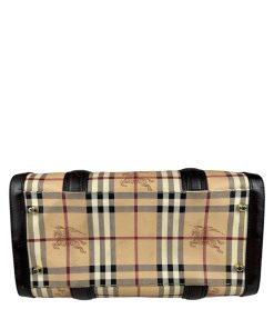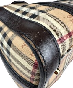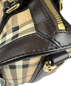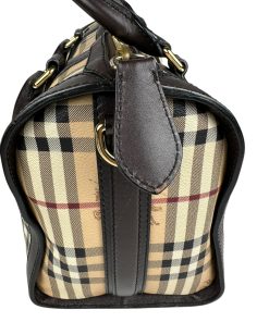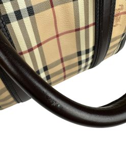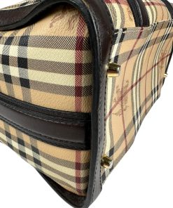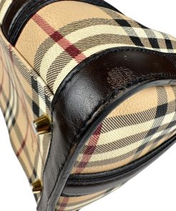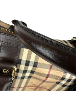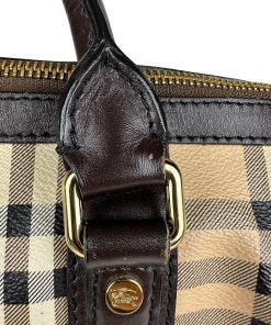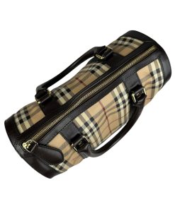 Borsa Burberry Bowling in tela Burberry Check e Pelle Marrone Scuro