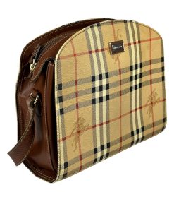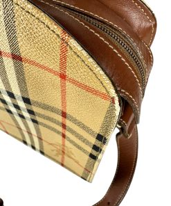 Borsa Burberry Haymarket Check a Tracolla, bellissima borsa vintage, realizzata nella famosissima tela con fantasia Burberry check e pelle marrone.