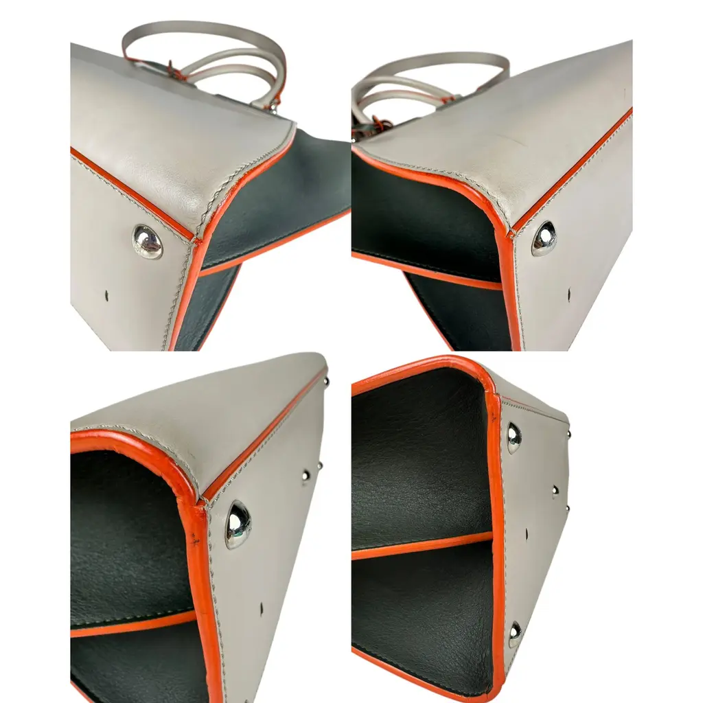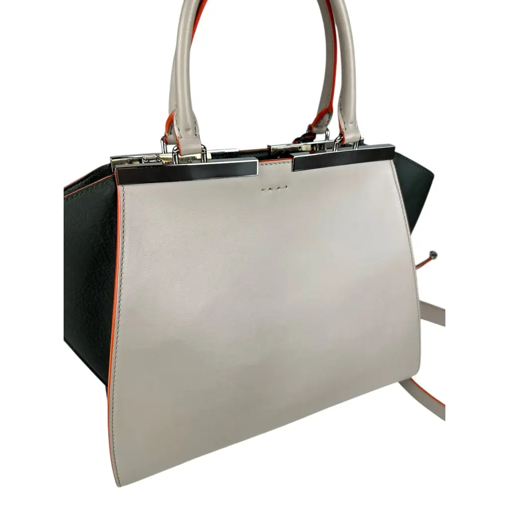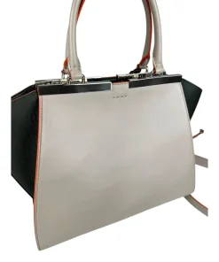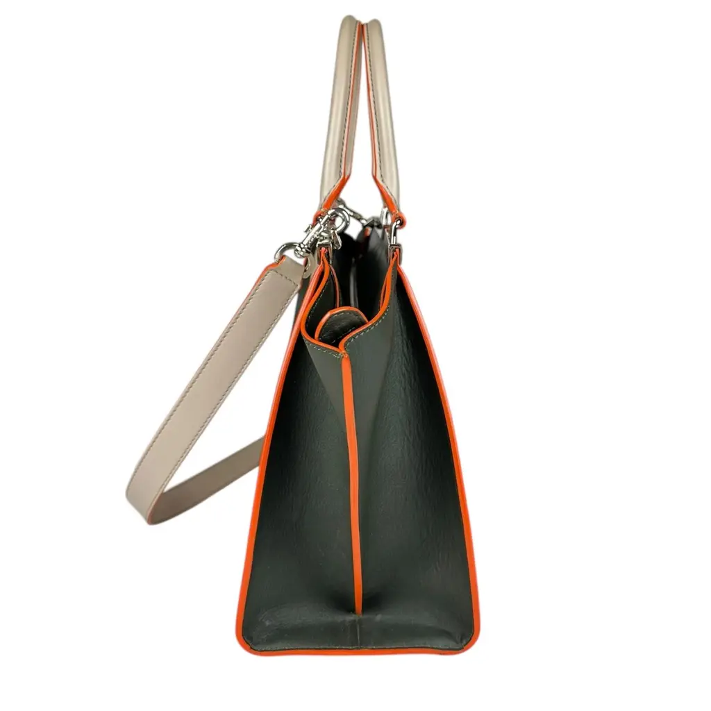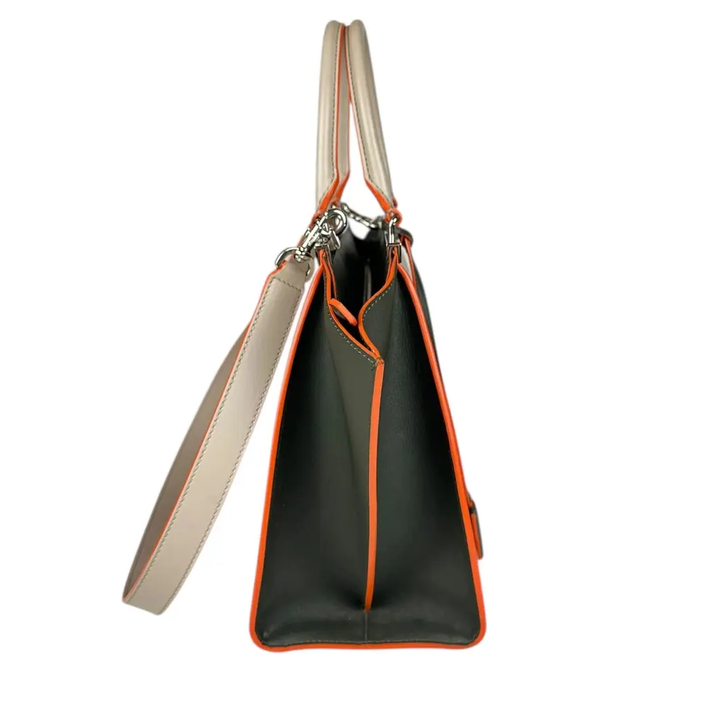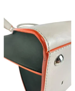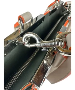 Borsa Fendi 2Jours in Pelle Grigia e Verde con Bordi Arancioni