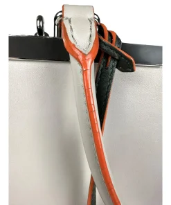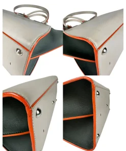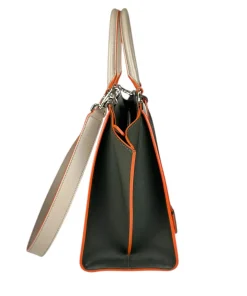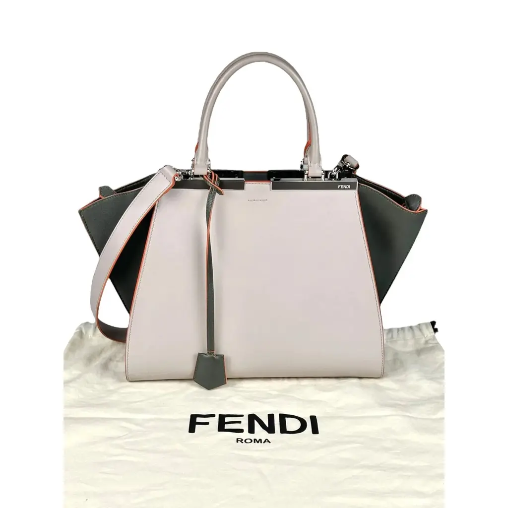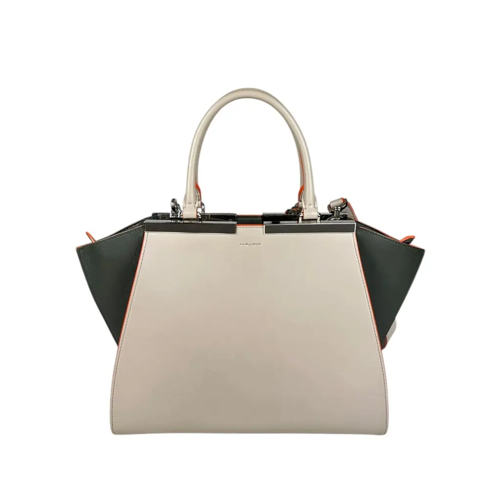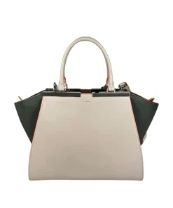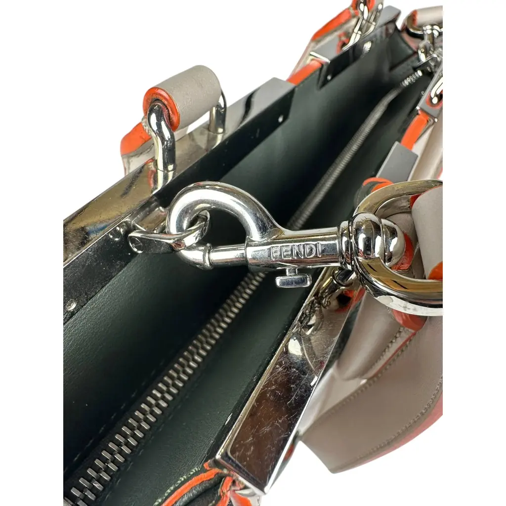 Borsa Fendi 2Jours in Pelle Grigia e Verde con Bordi Arancioni