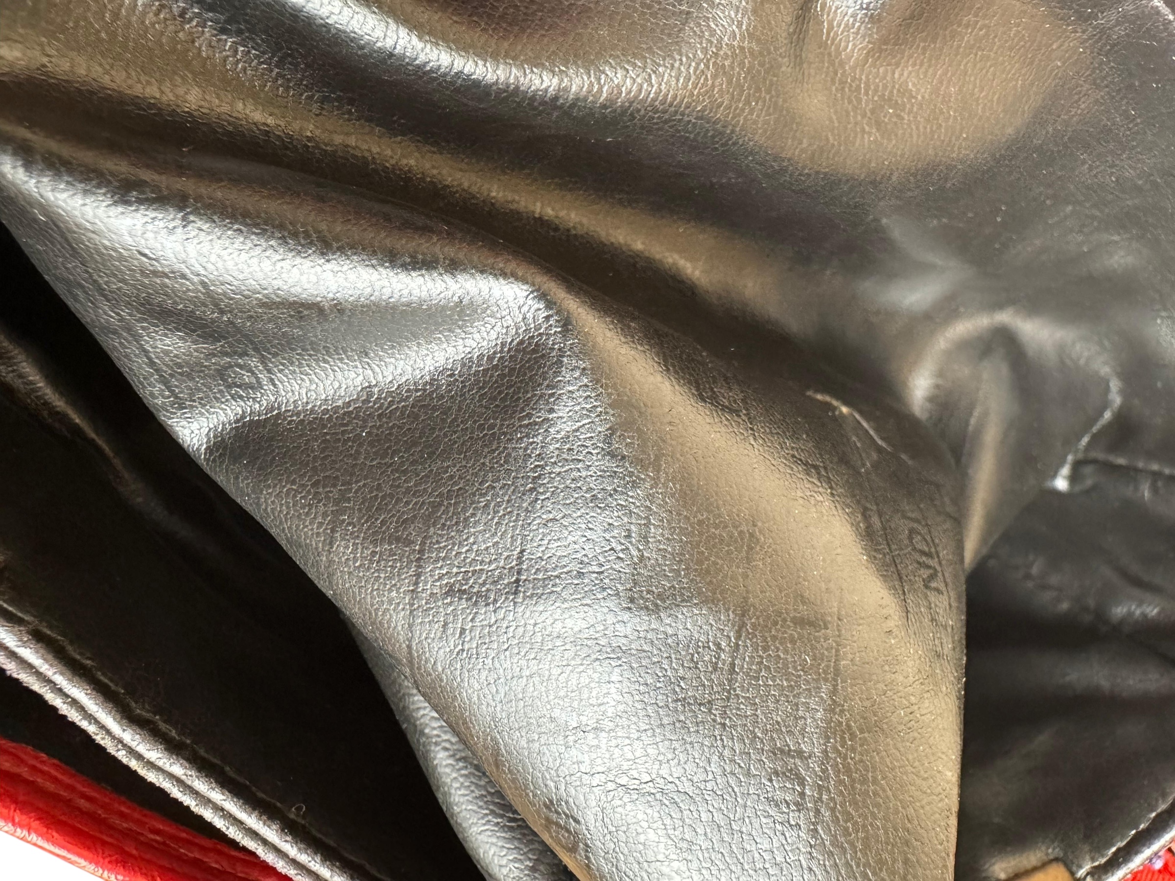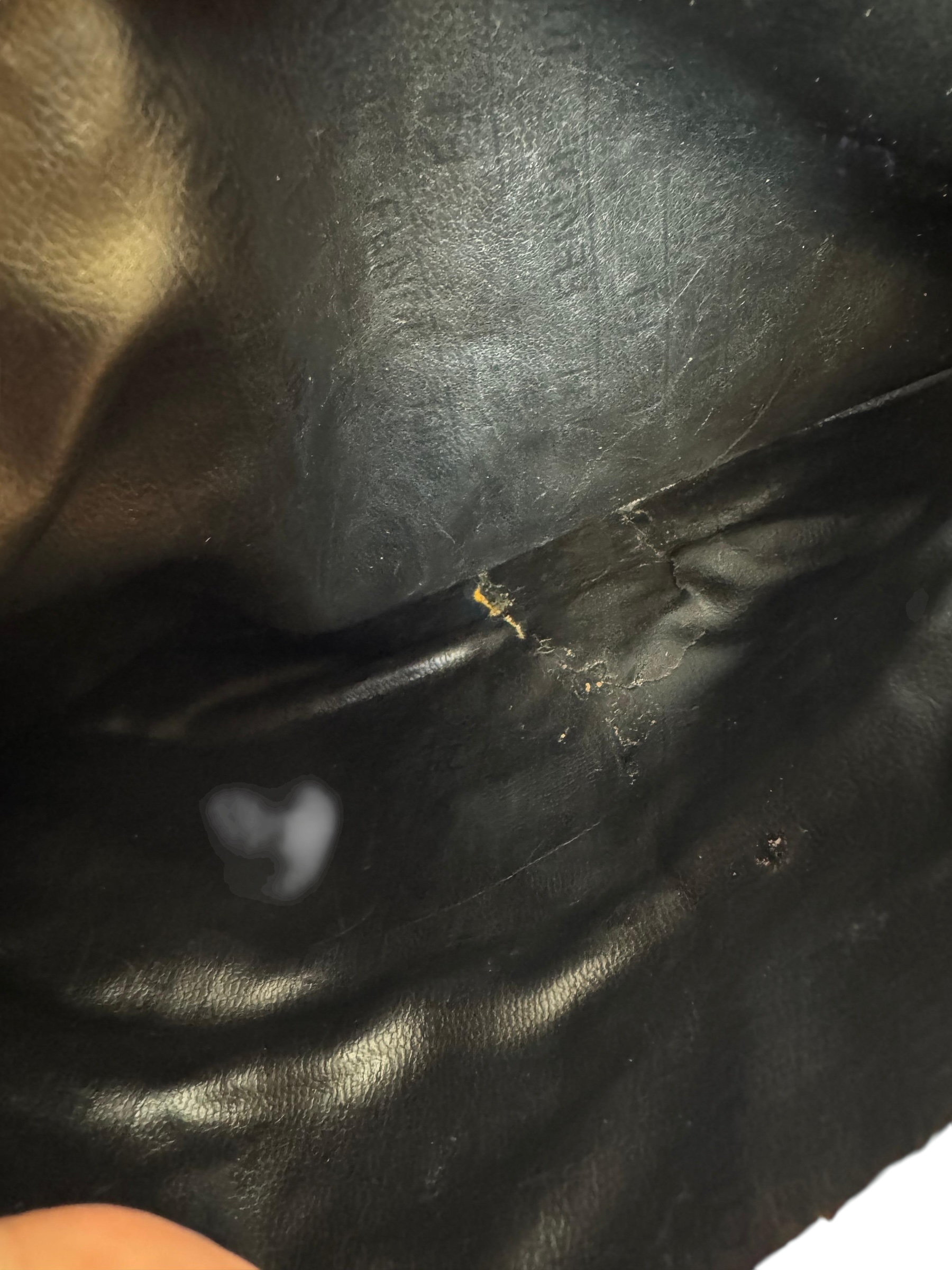 Presenti segni di utilizzo su angoli e bordi in pelle.