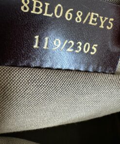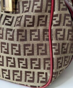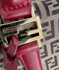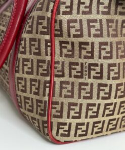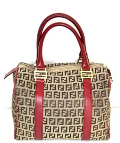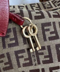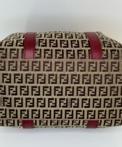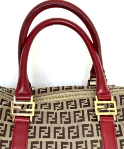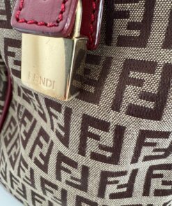Realizzata in tela beige/marrone, con dettagli in pelle bordeaux e metallo dorato.