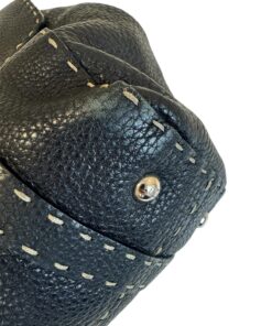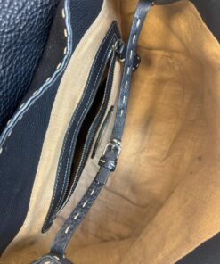 La borsa Fendi Linda della linea Selleria, in raffinata pelle nera, è un vero gioiello per chi cerca un accessorio esclusivo che combina lusso e praticità. Le sue condizioni esterne sono eccellenti, con lievissimi segni di usura su due angoli appena visibili, che nulla tolgono alla sua raffinatezza. Gli interni, in buone condizioni, presentano solo piccole macchioline che, con un semplice trattamento, possono essere facilmente eliminate.