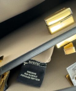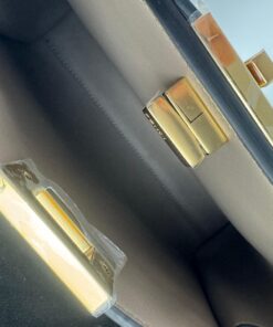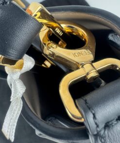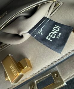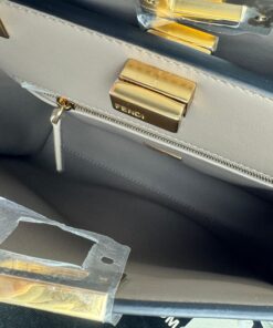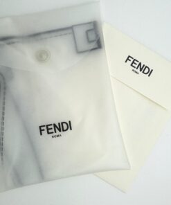 E’ caratterizzata dall’iconica chiusura a girello firmata Fendi, in metallo dorato, su entrambi i lati.
