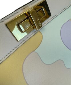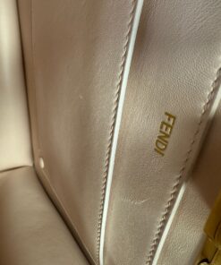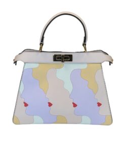 Borsa Fendi Peekaboo Limited Edition in Pelle Rosa Chiaro con stampa profili donna su una delle facciate.
