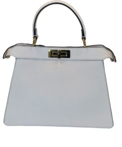 Arricchita, su entrambi i lati dalla iconica chiusura a girello firmata Fendi, in metallo dorato.