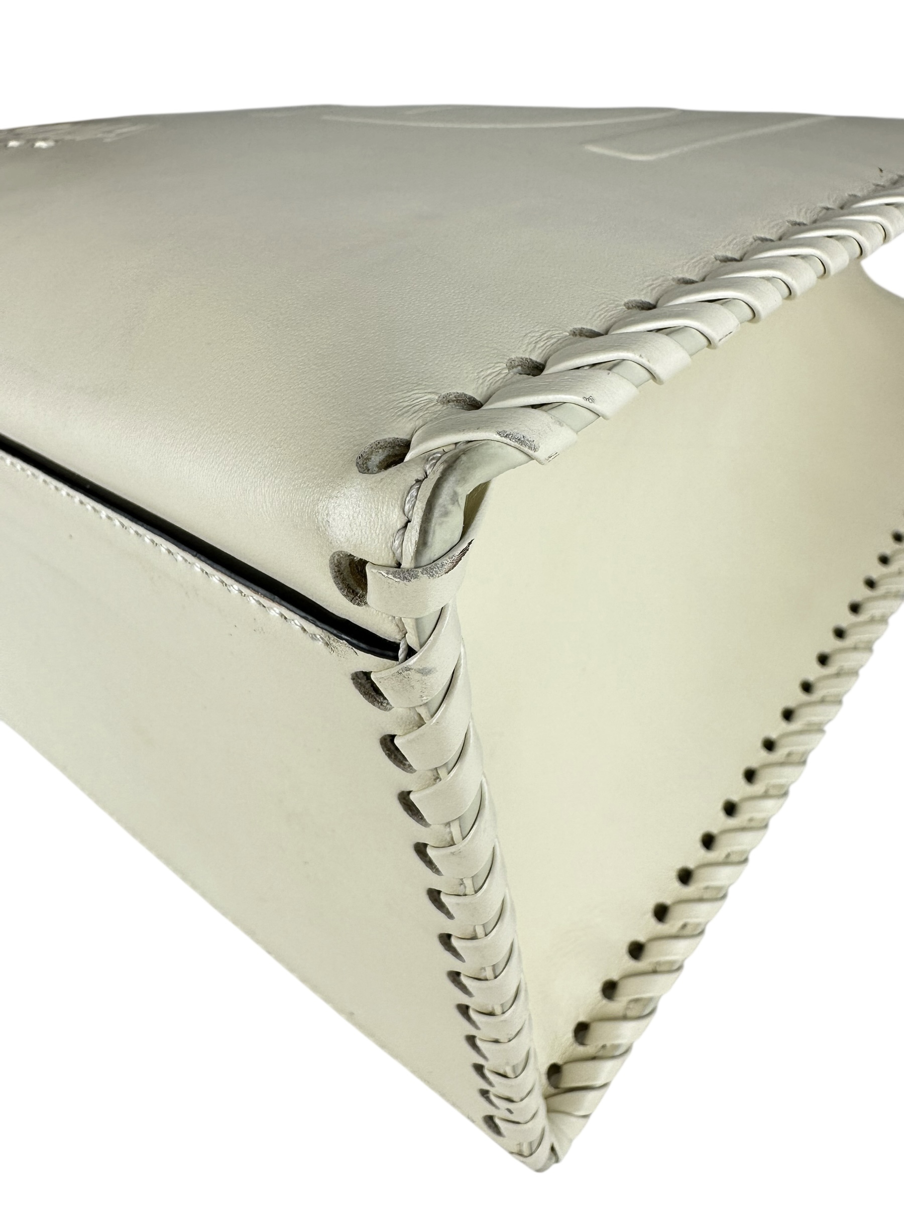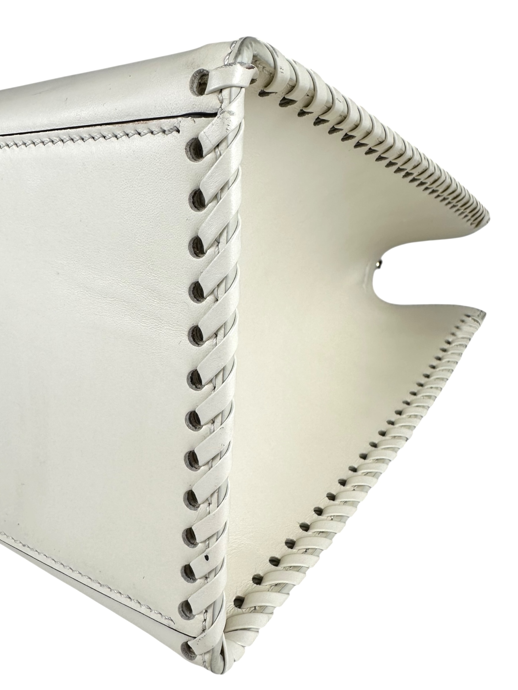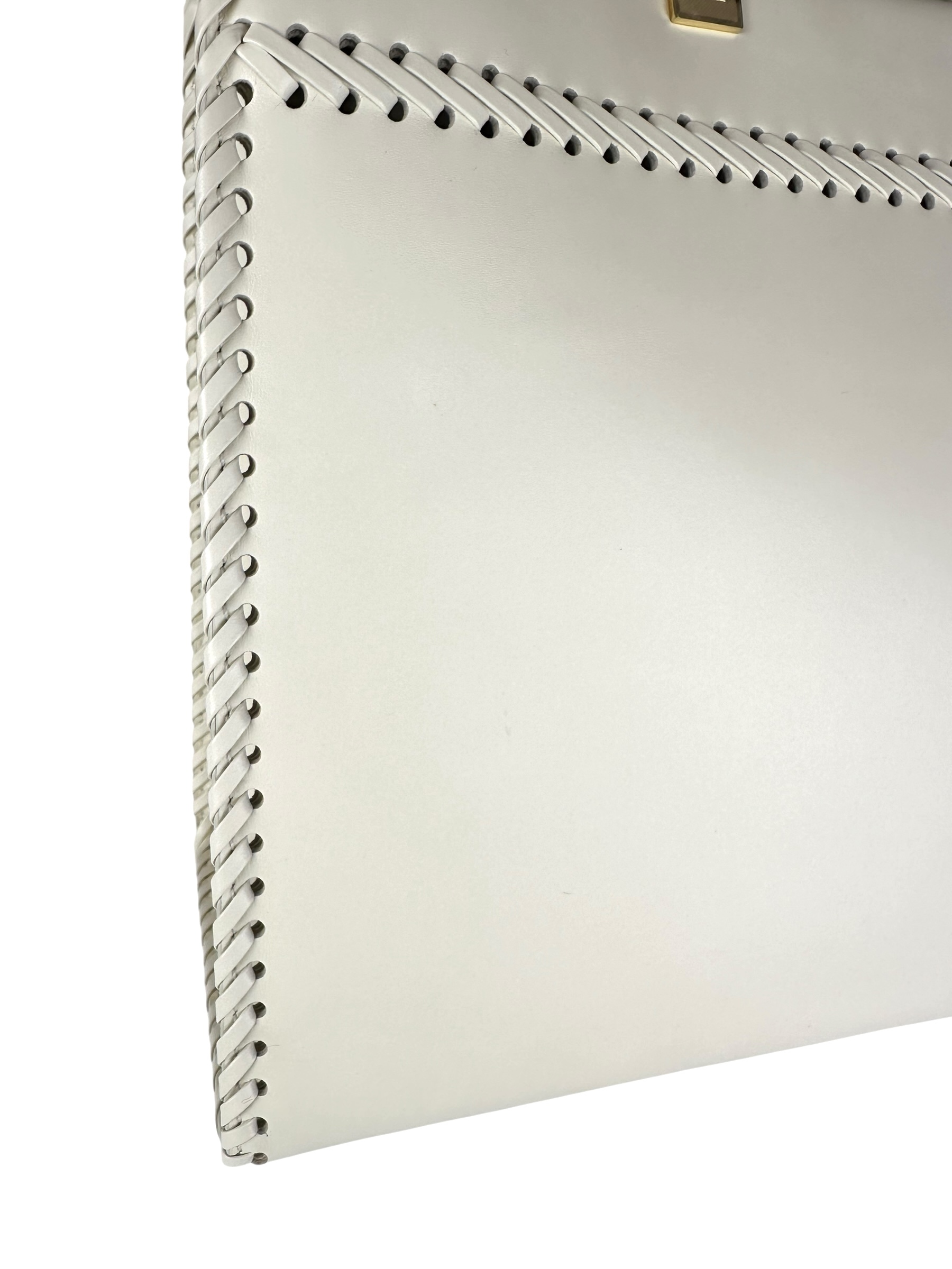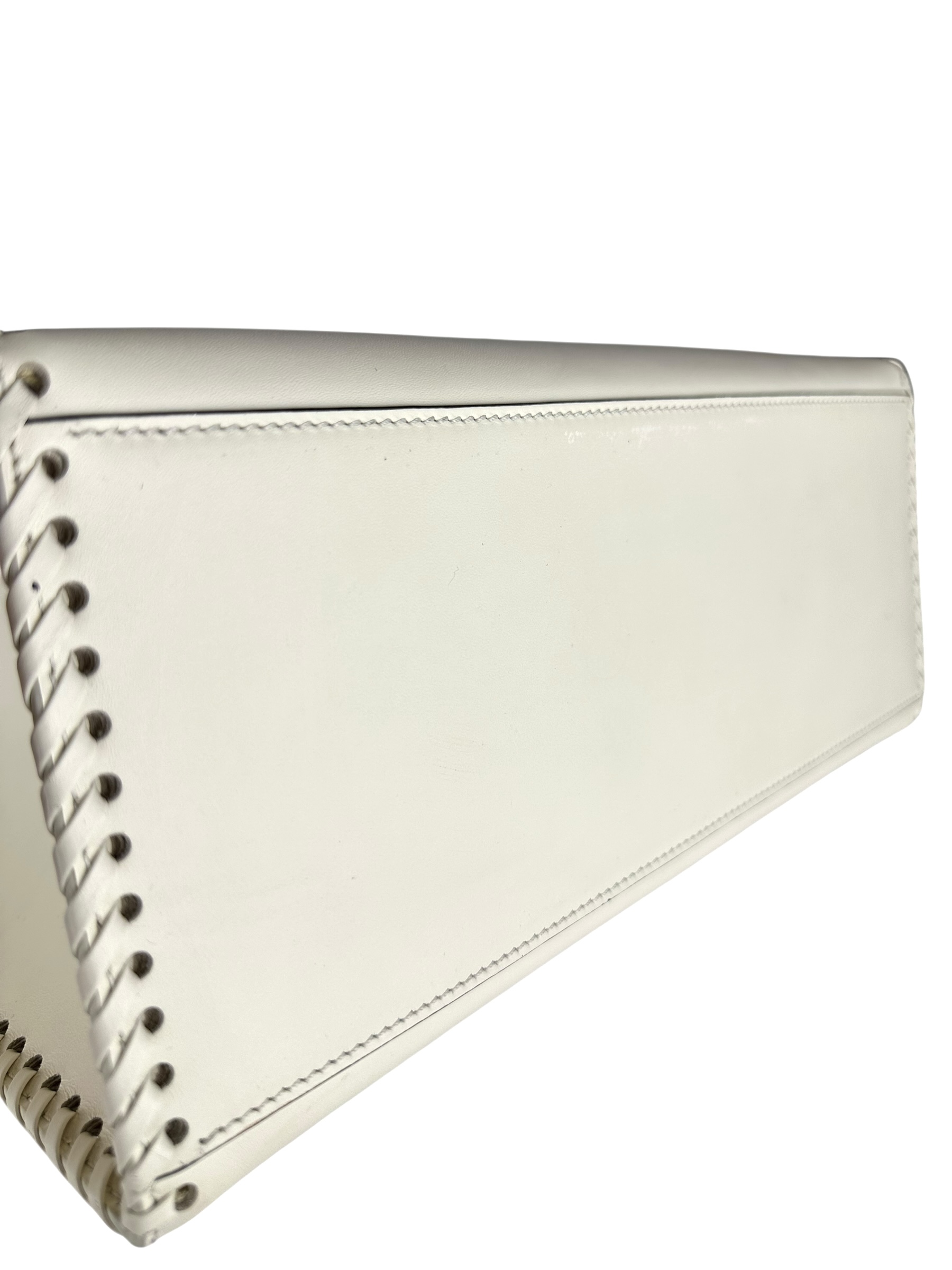- Realizzata in pelle di vitello liscia bianca