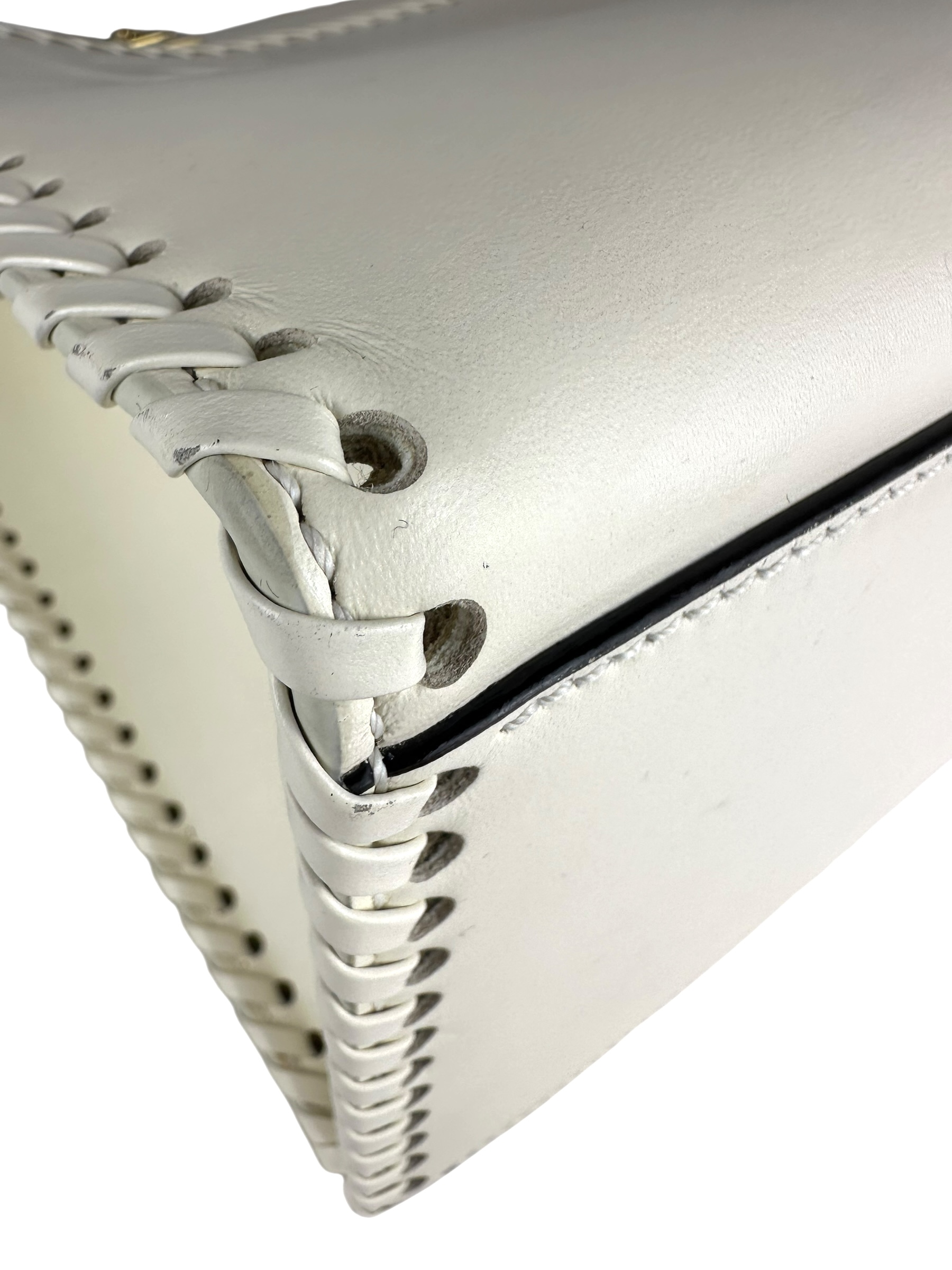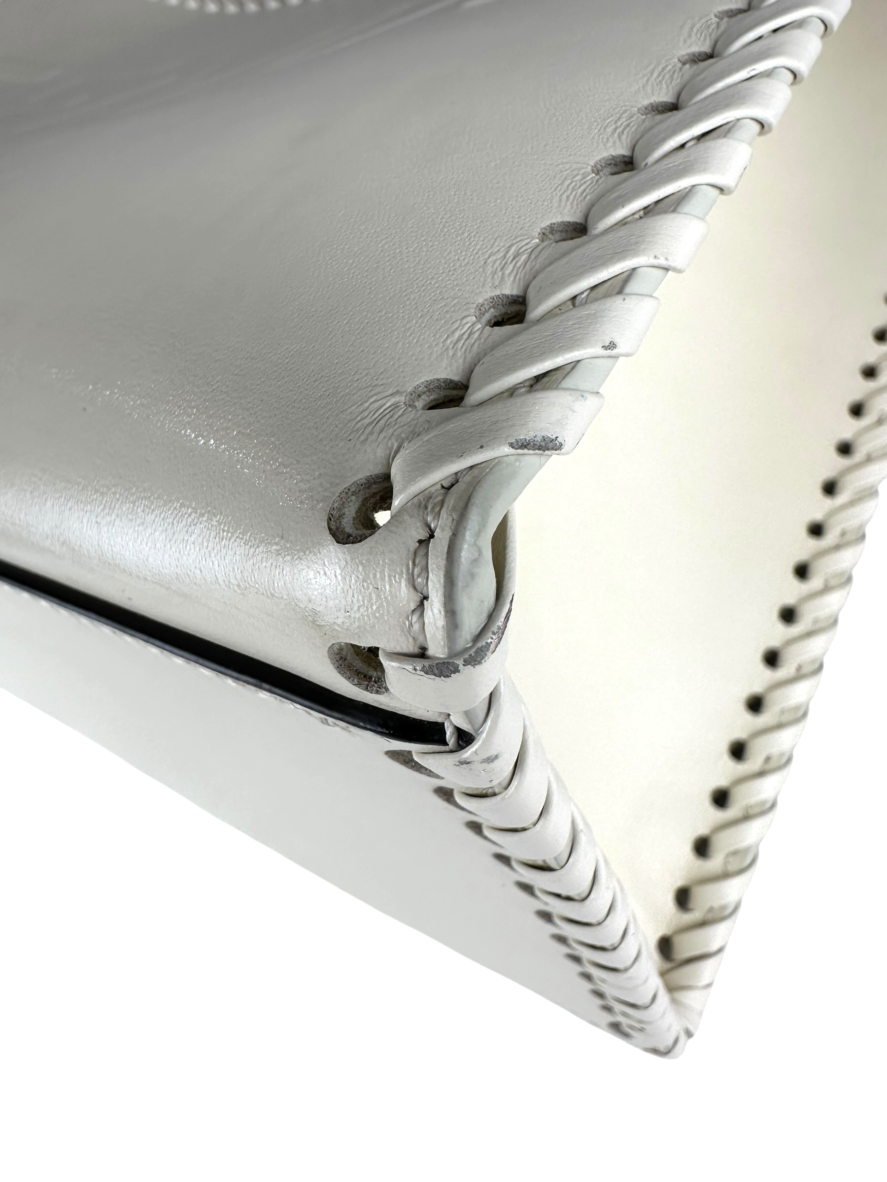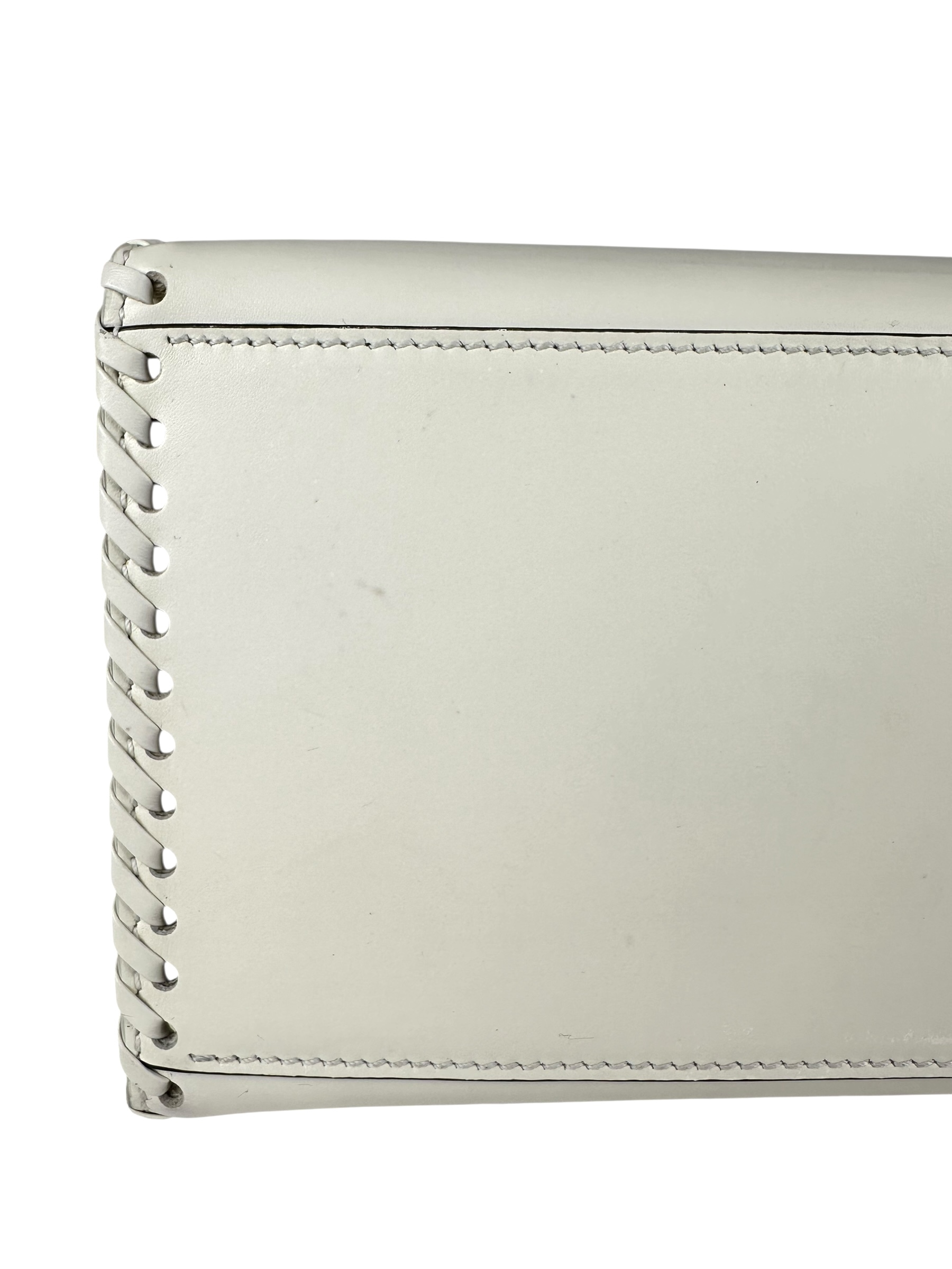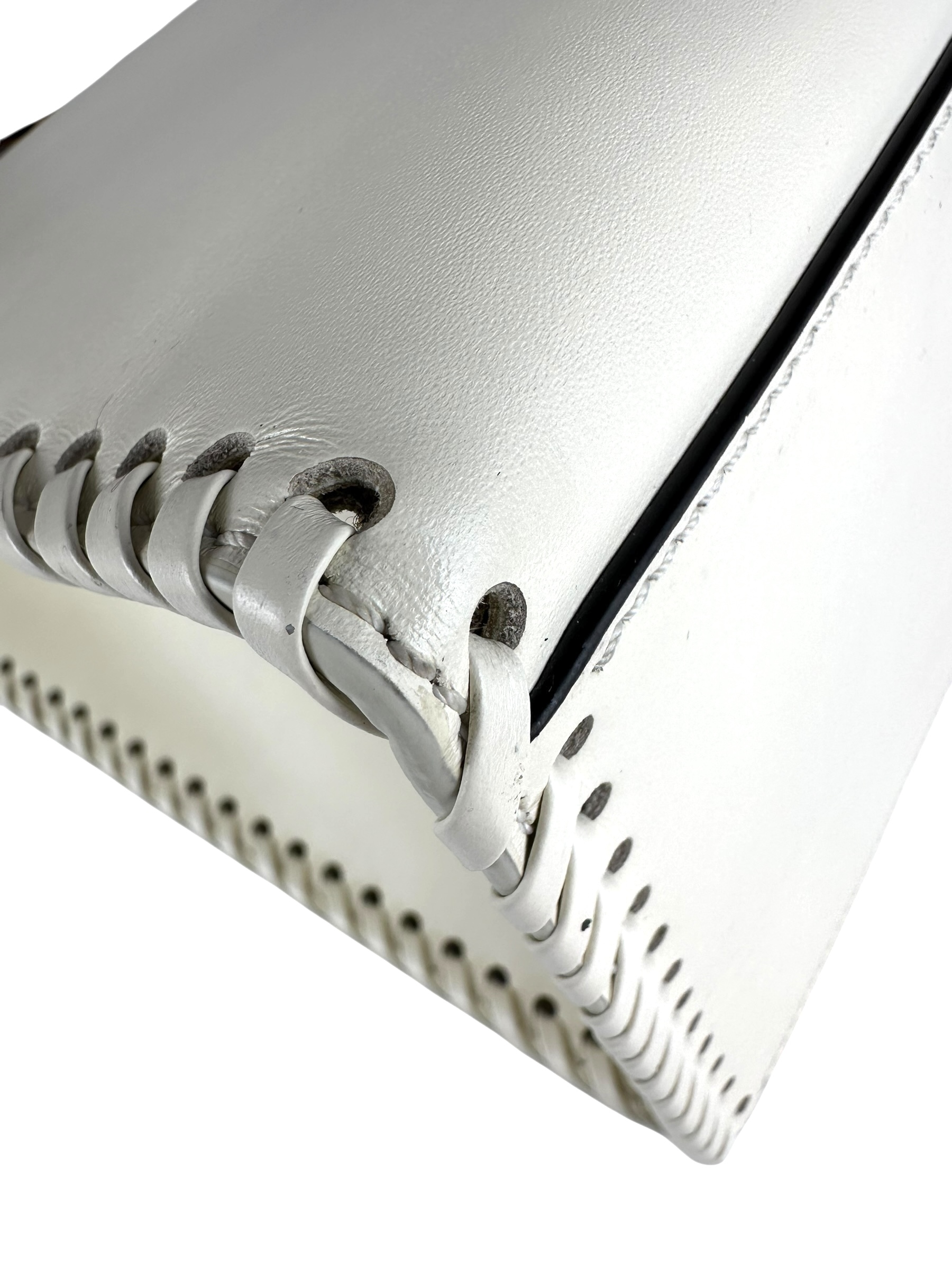 - Realizzata in pelle di vitello liscia bianca