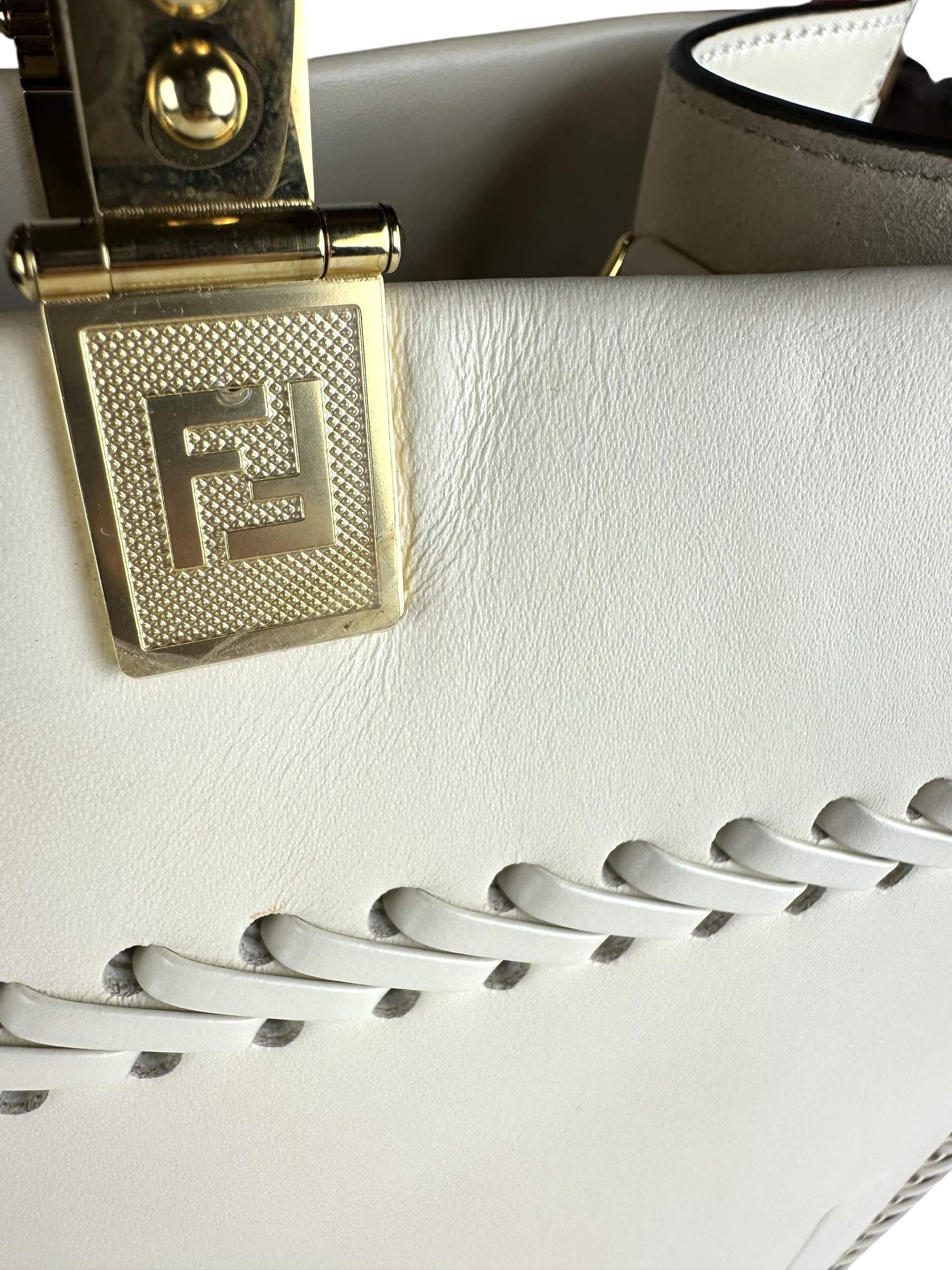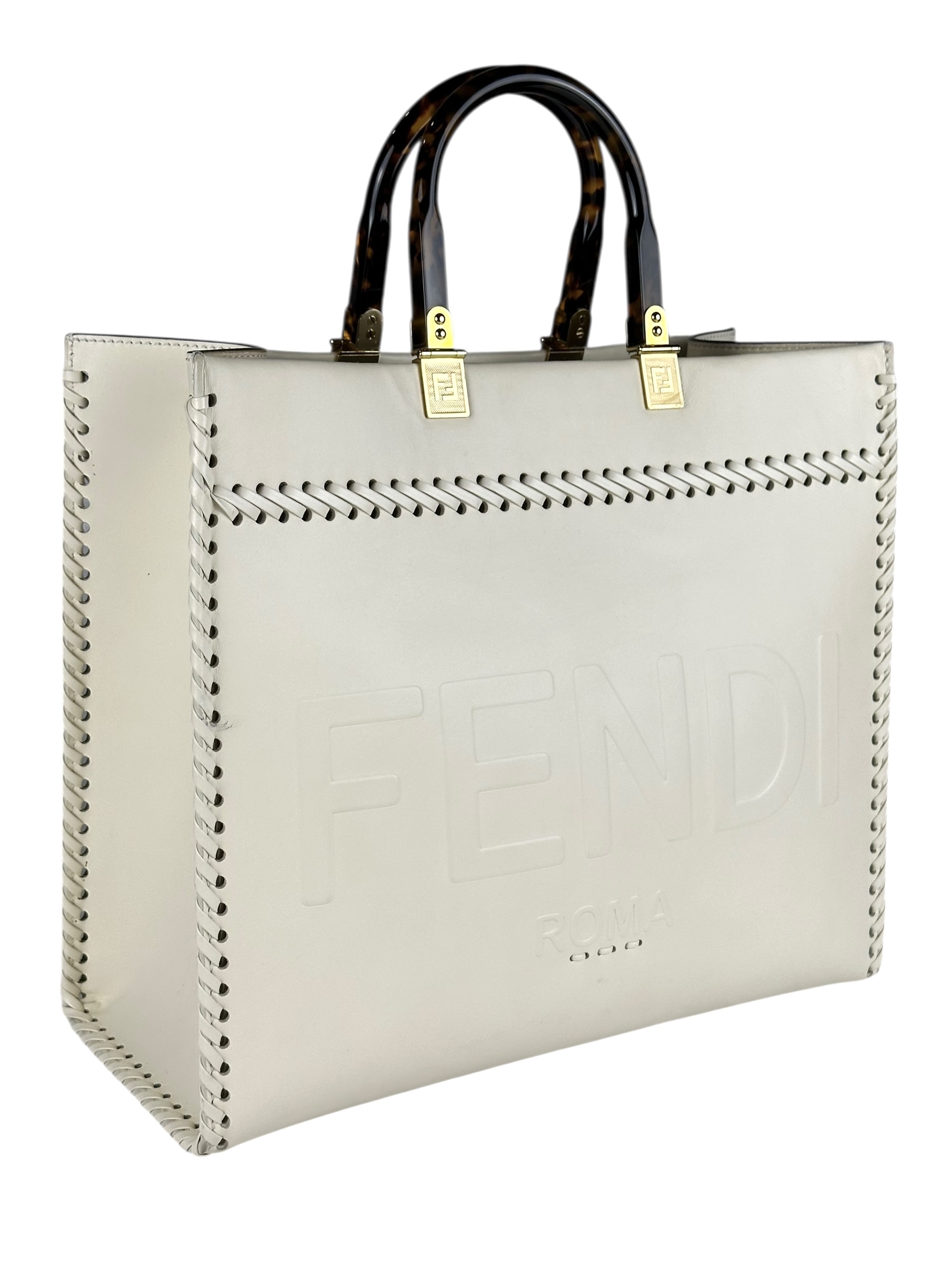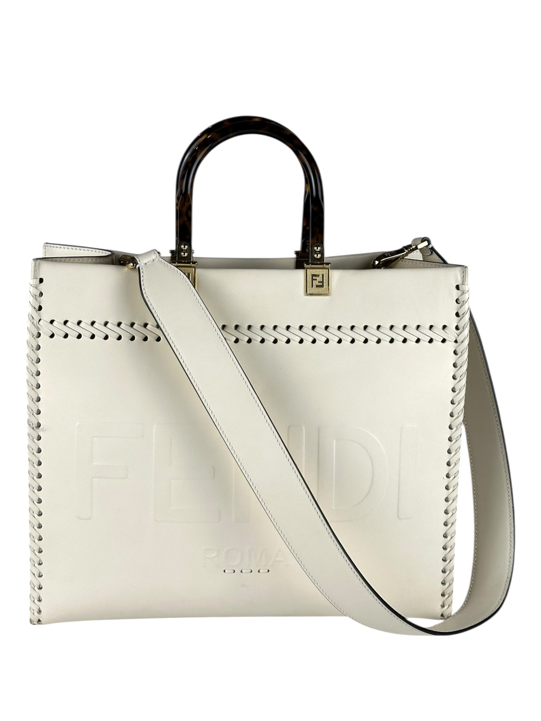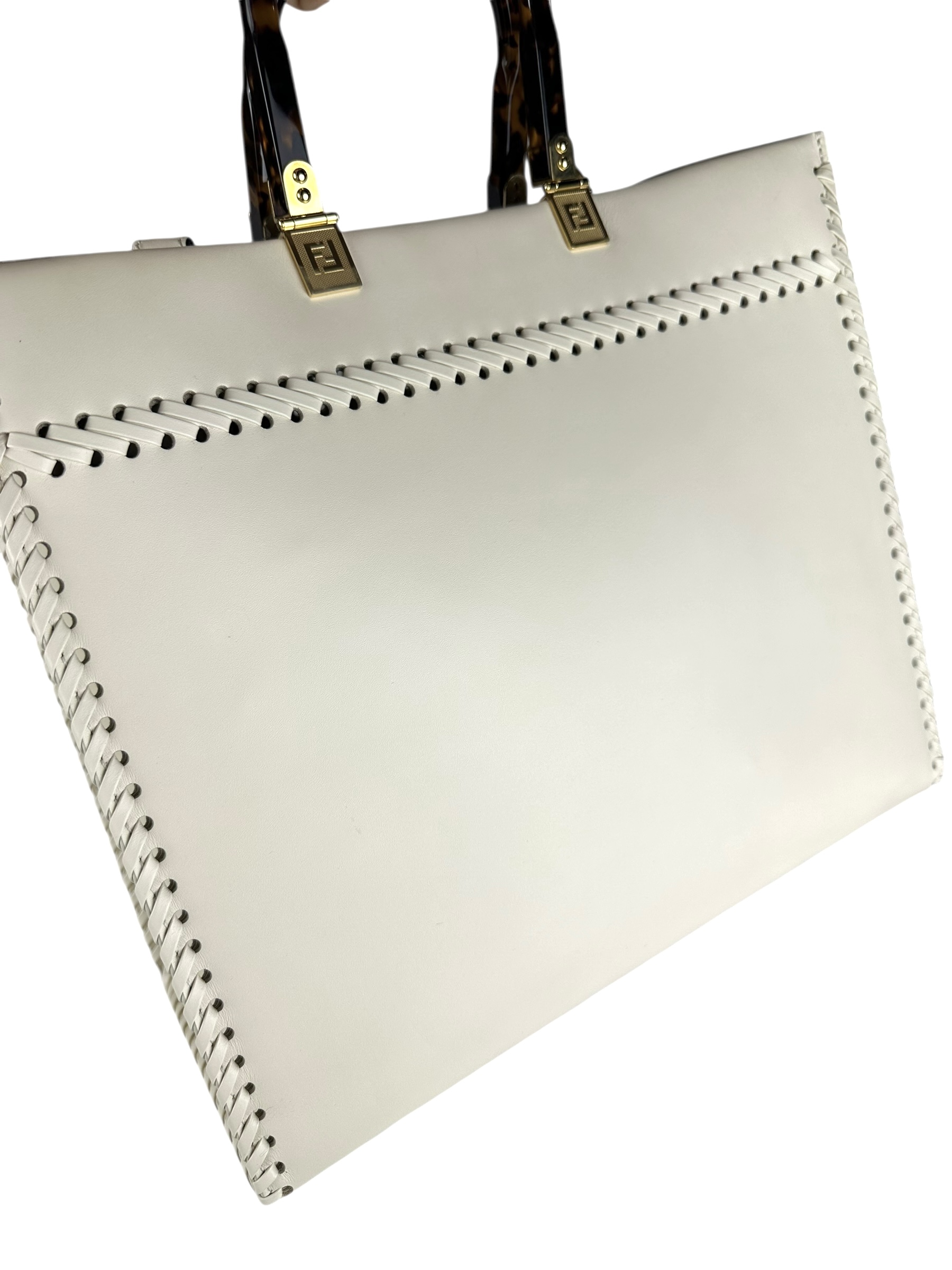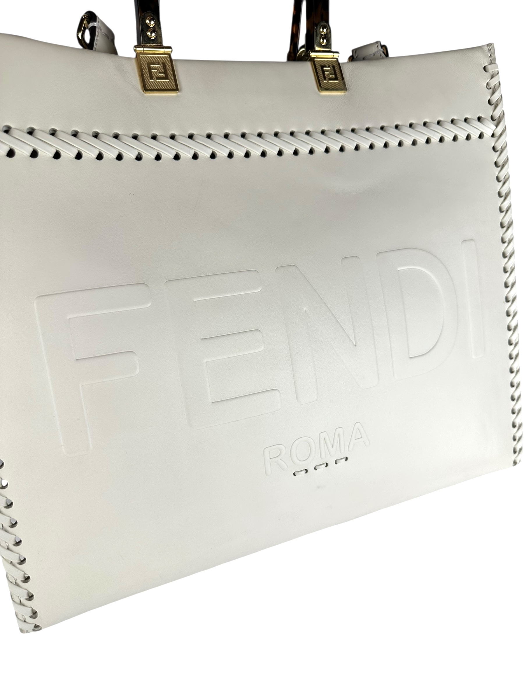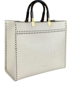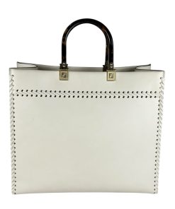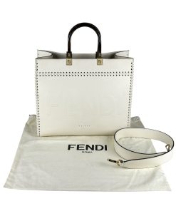 Borsa Fendi Shopper Sunshine Medium in Pelle Bianca.