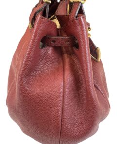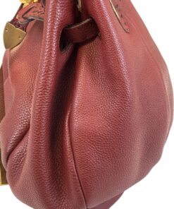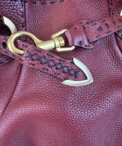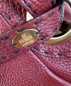 Borsa Fendi Tote Selleria Pomodorino in Pelle Bordeaux, prodotta interamente a mano tramite lavorazione artigianale e numero di serie, come riportato nell’etichetta “Selleria” posta sia fuori che all’interno della borsa.