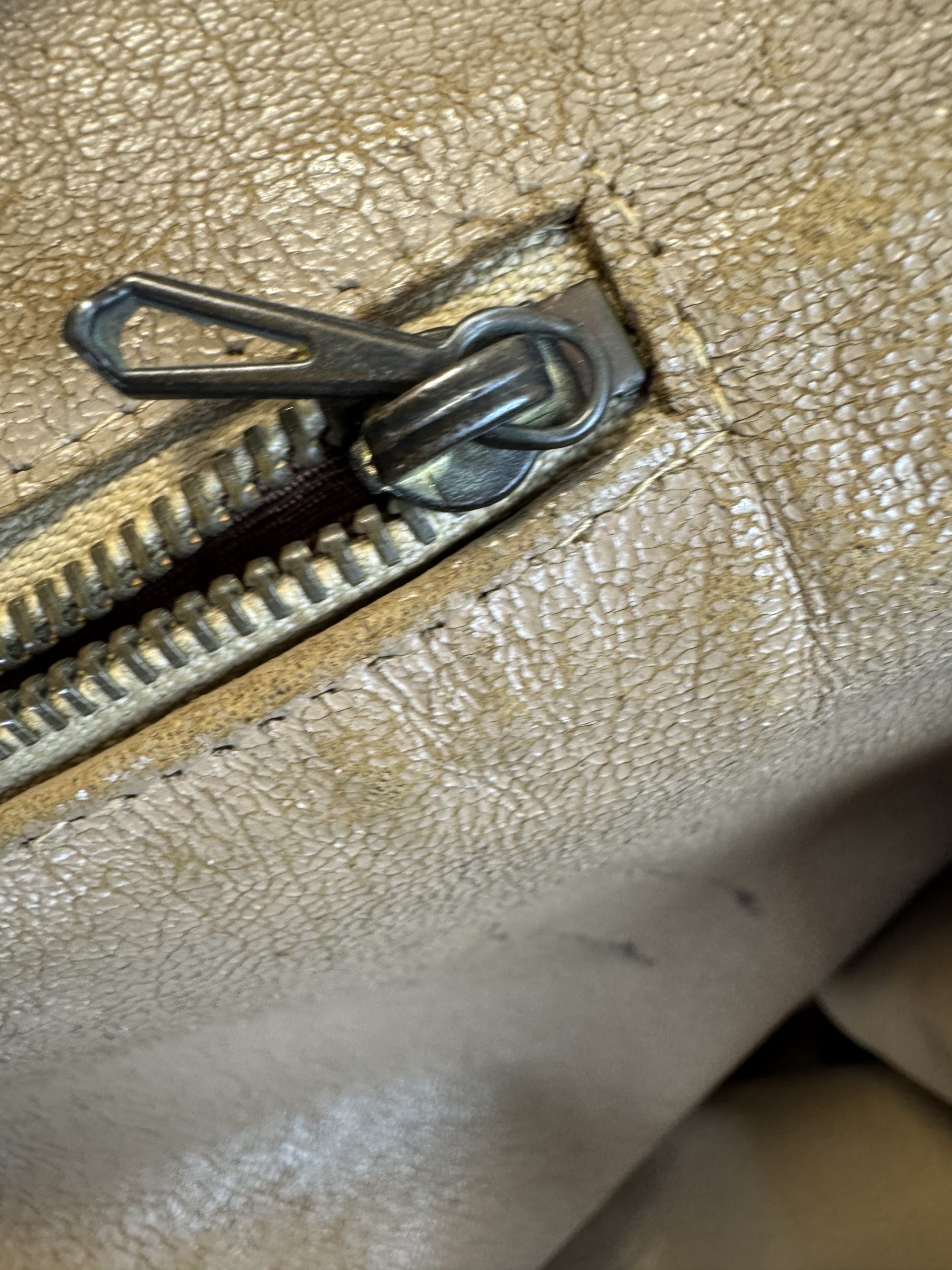 Sono stati effettuati dei lavori di riparazione ben visibili dalle foto nella fodera interna.