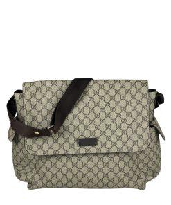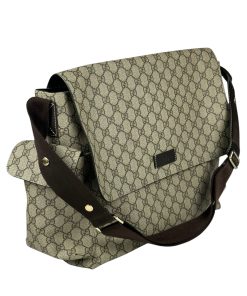 Comodissima Borsa Gucci a Spalla Accessori bebè/Viaggio Misura Grande in Tela Beige e Marrone.
