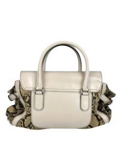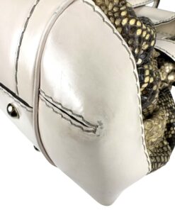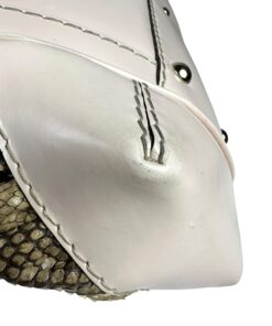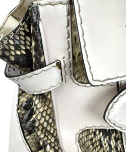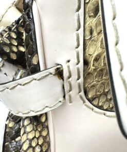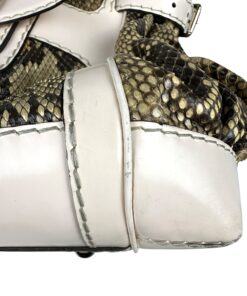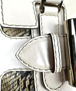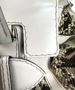 - Corpo realizzato in pelle pitonata verde oliva e beige, con dettagli in pelle bianca