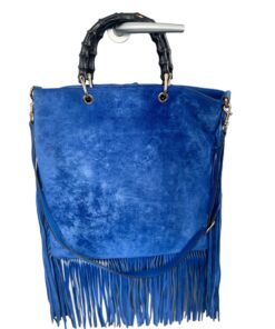 Borsa Gucci Bamboo Fringe Tote Shopper Suede Blu, stilosissima ed eccentrica.