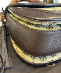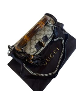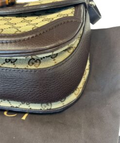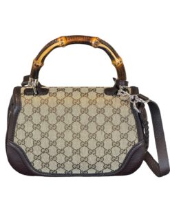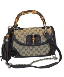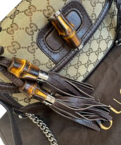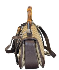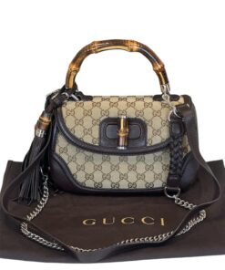 Borsa Gucci Bambù Grande a Tracolla in Tela GG Beige e Marrone.