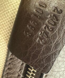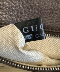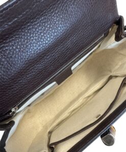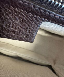 Realizzata in tela Monogram GG, con finiture in pelle marrone scura e dettagli in metallo argentato.