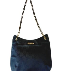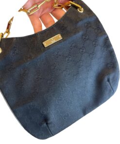 Realizzata in tessuto monogram GG nero, è arricchita da dettagli in metallo dorato.