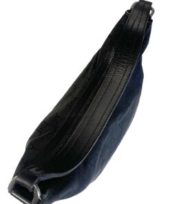 Si porta a spalla o al gomito, tramite il manico in pelle nera.