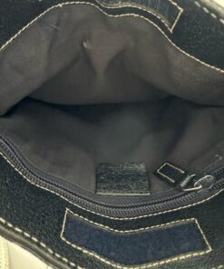Si chiude superiormente con velcro e presenta una tasca piatta esterna. Internamente è composta da un unico vano e da una tasca con cerniera.