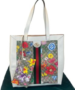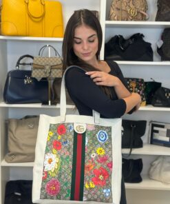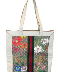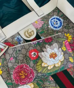 Borsa Gucci GG Supreme Flora Ophidia Tote Bag Multicolore Beige.