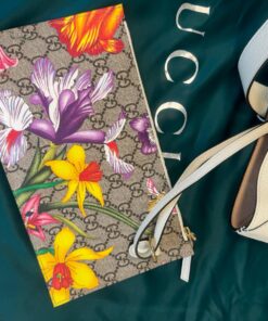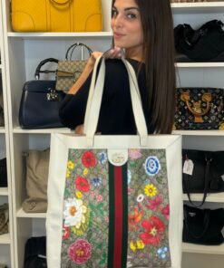 Il classico tessuto Monogram GG di Gucci si arricchisce, nelle collezioni Flora, di una stampa floreale colorata, che conferisce alle borse uno spirito romantico ed allegro.