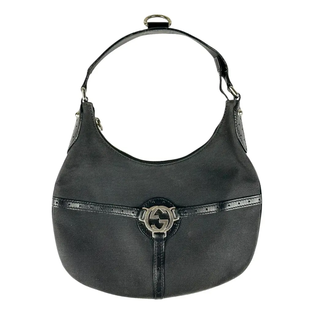 Borsa Gucci Hobo a Spalla in Tessuto e Pelle Nera.