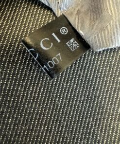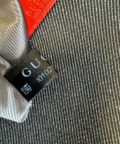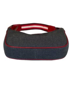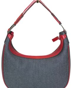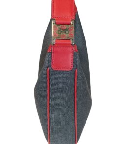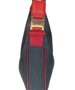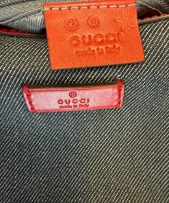 Borsa Gucci in Tessuto Denim Blu e Rossa, da portare a spalla tramite il manico realizzato nell’iconico nastro web di Gucci.