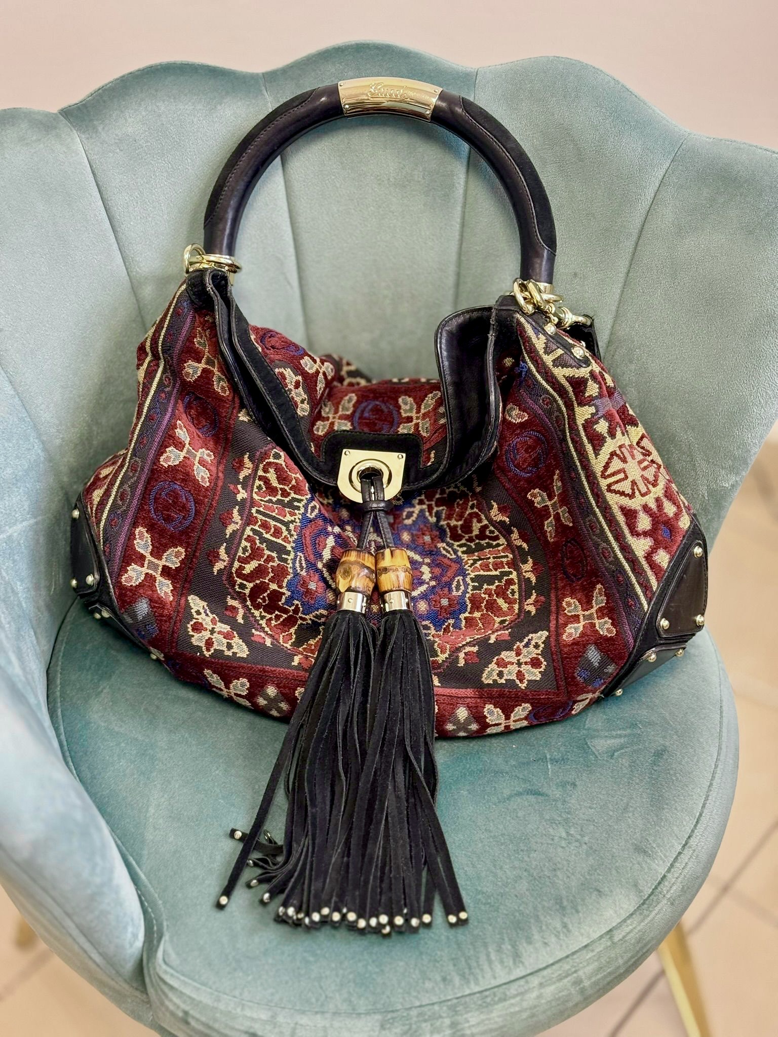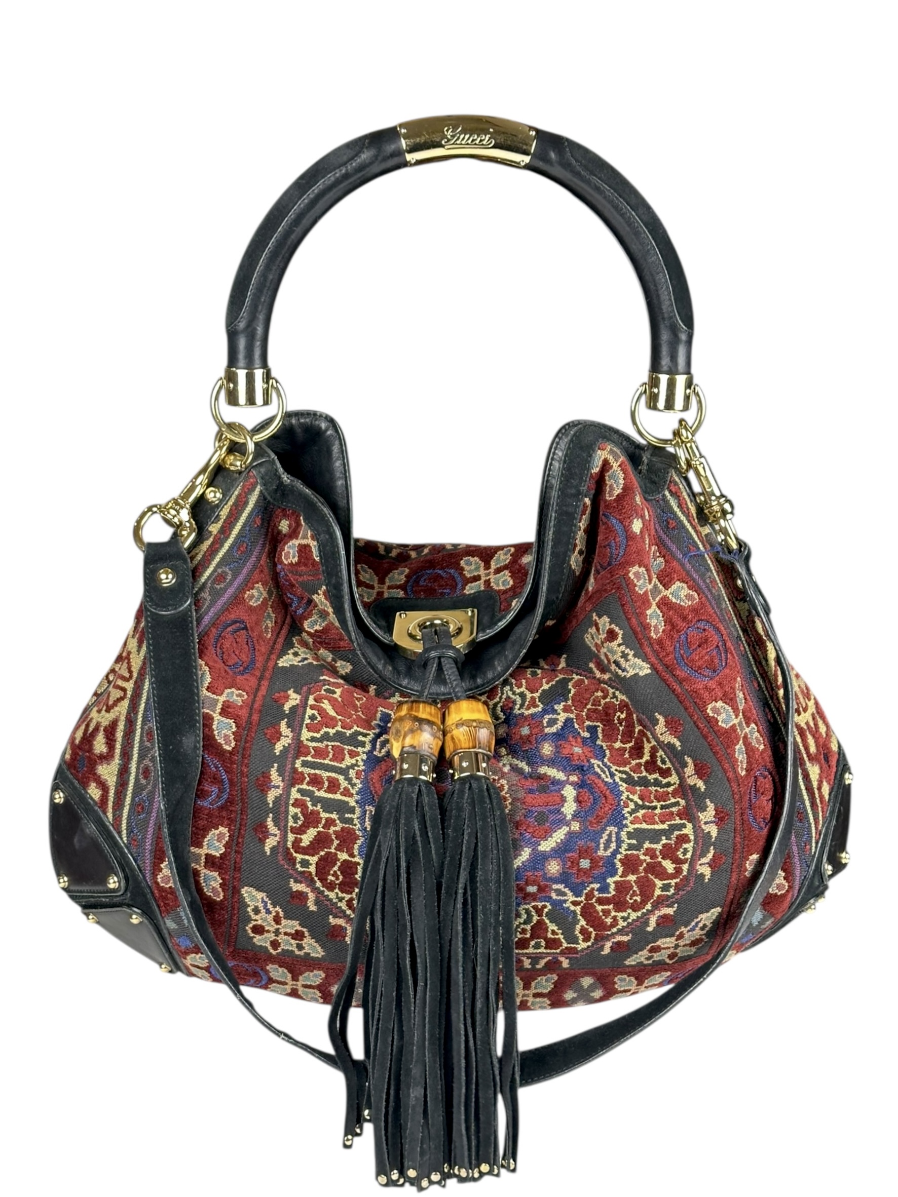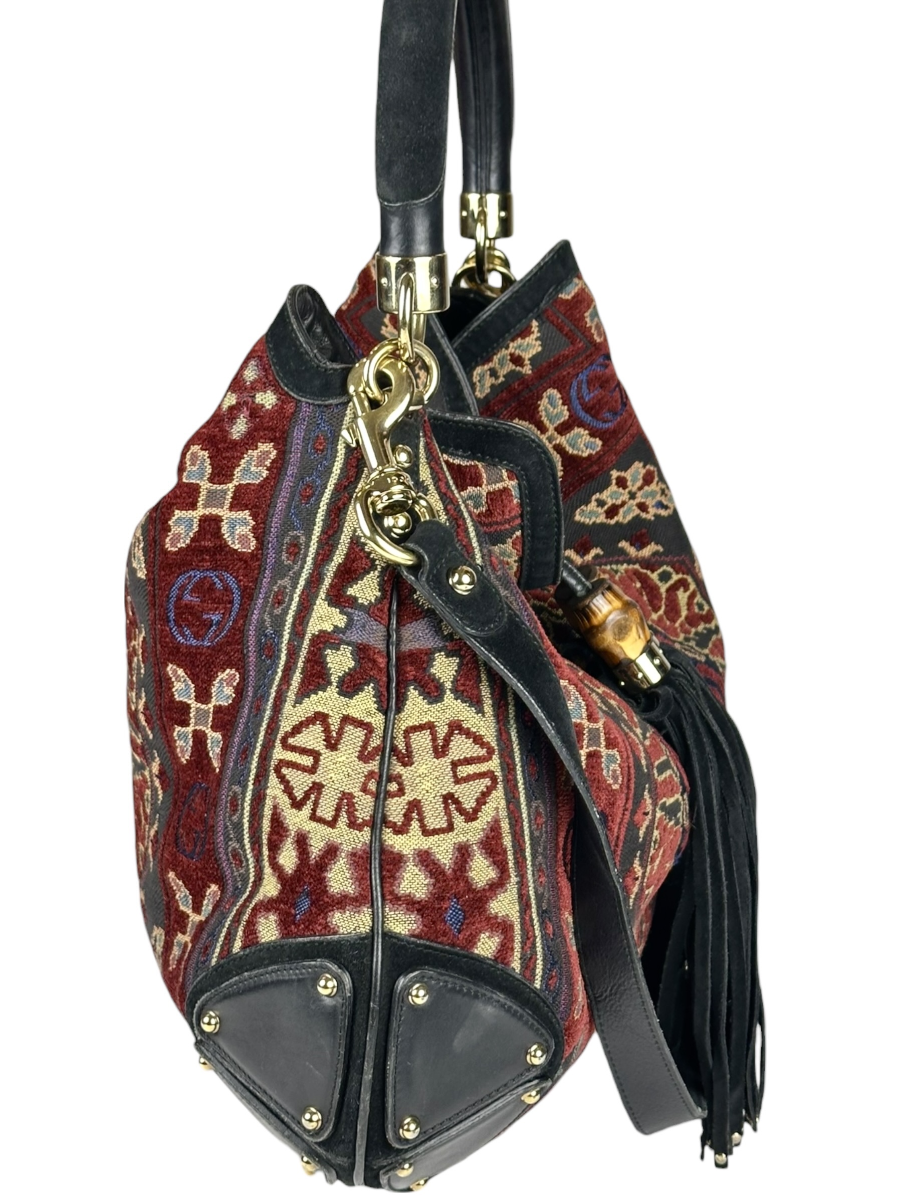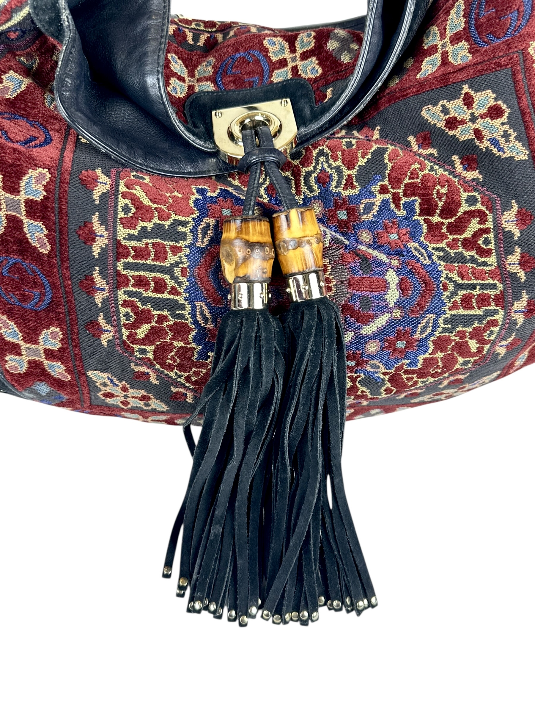 Borsa Gucci Indy Bag Bamboo Hobo in Tessuto Multicolore.